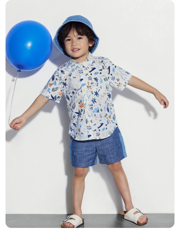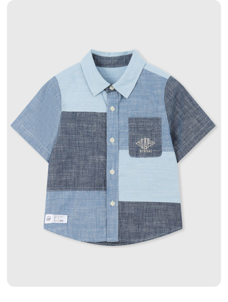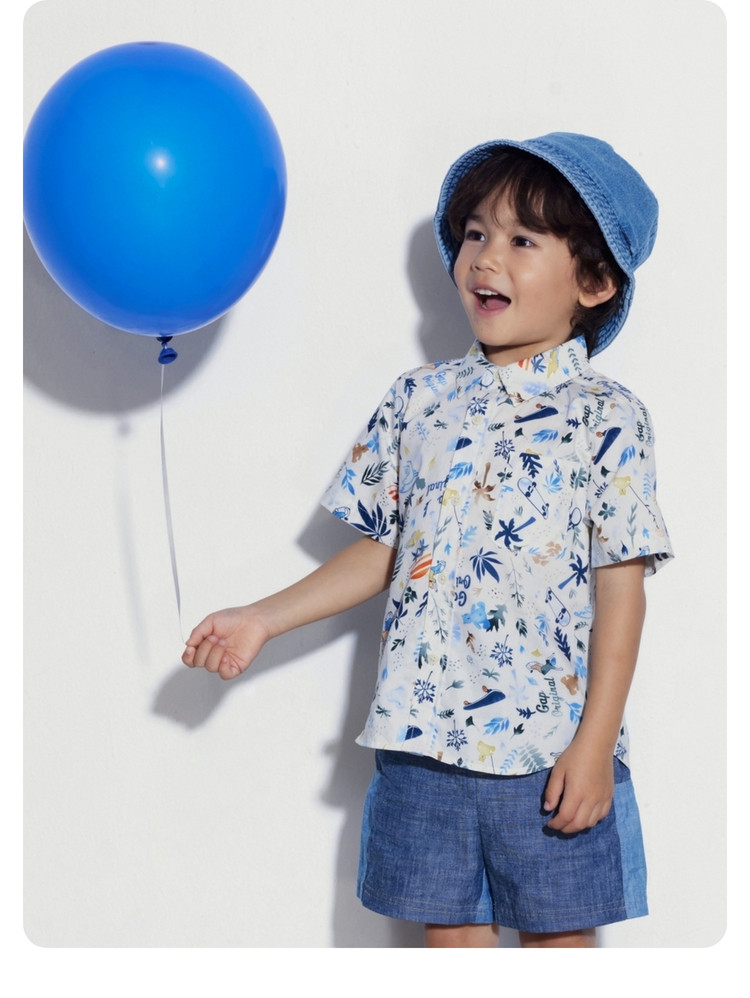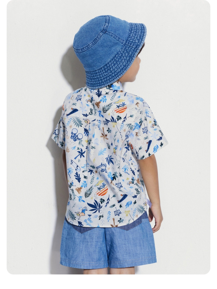 商品名称:Gap男幼童2024夏季兰精天丝满印花衬衫儿童短袖上衣465970 374746