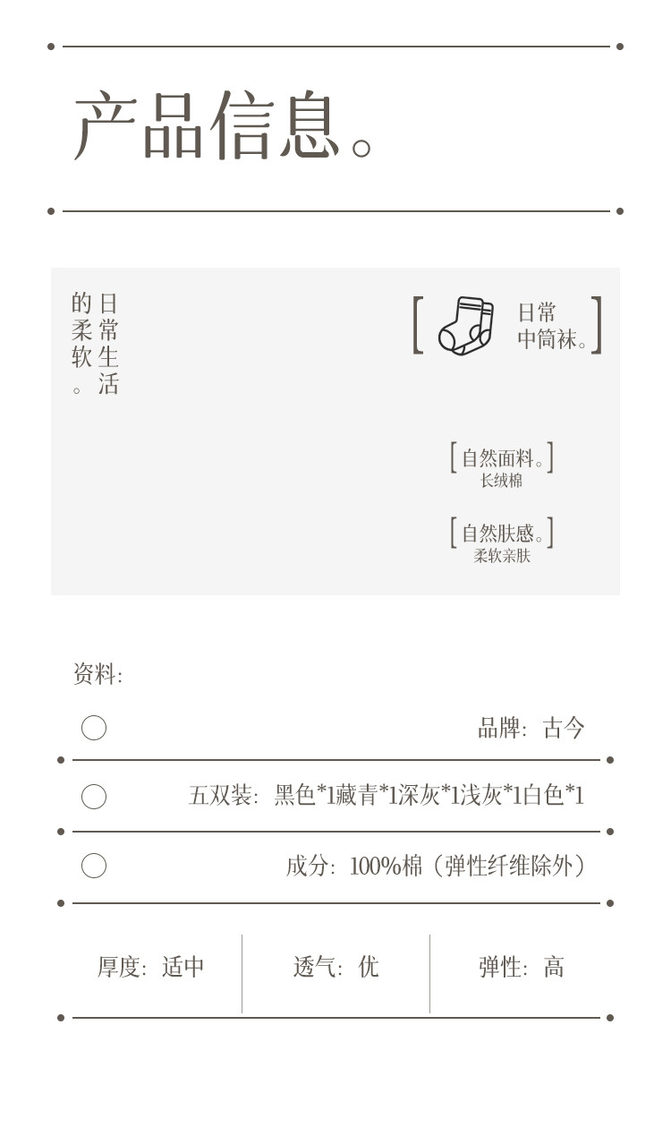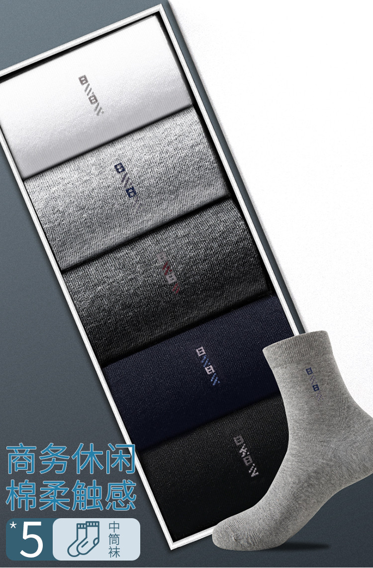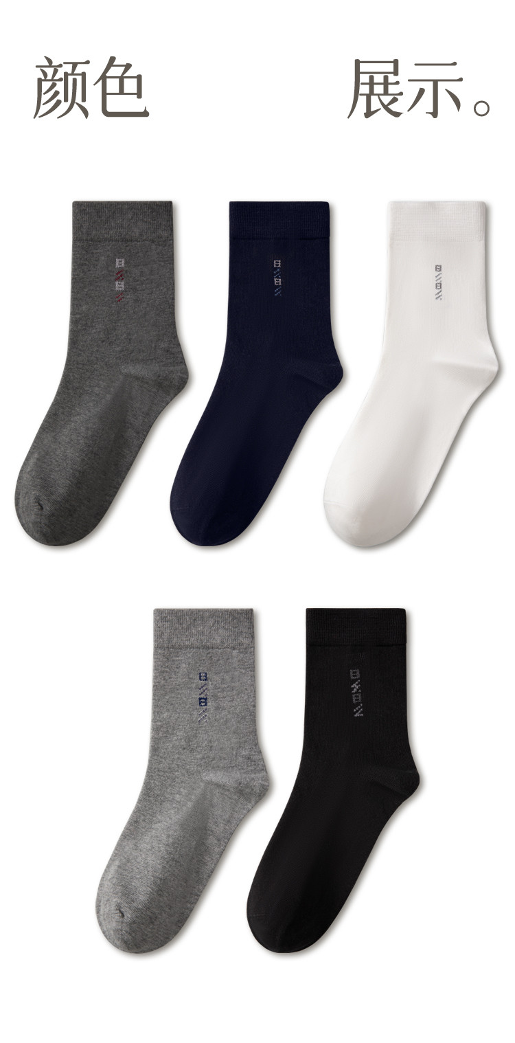 商品名称:【100%纯棉抑菌】5双秋冬款男袜商务中筒袜子透气男士袜子 097355