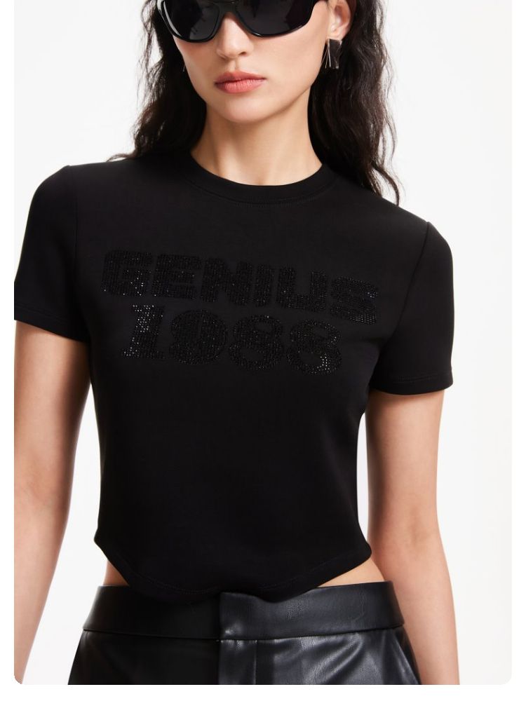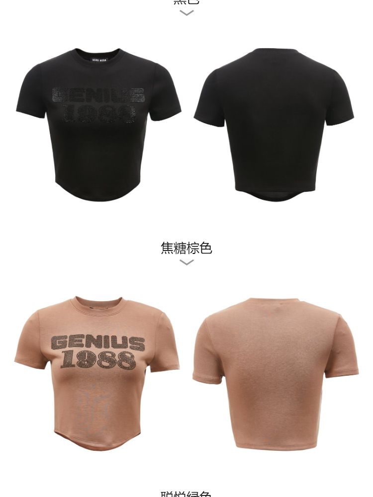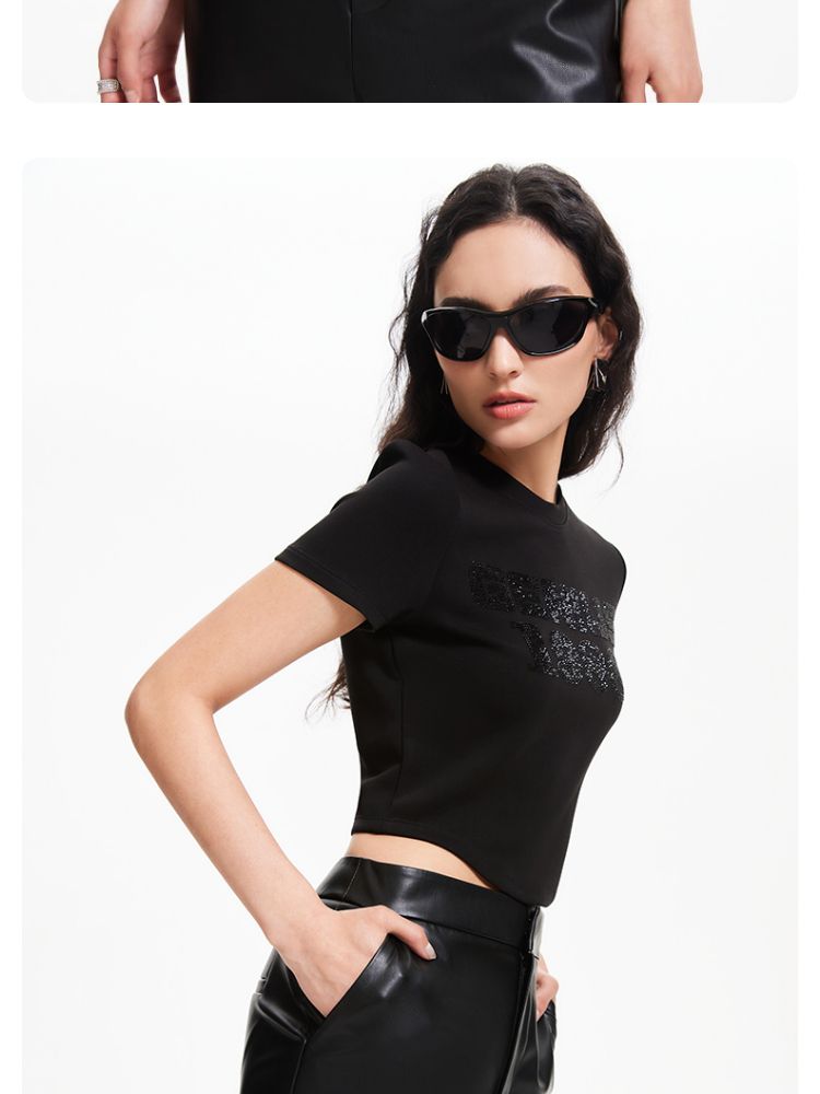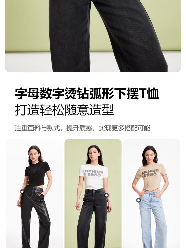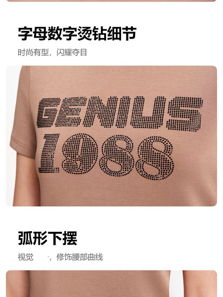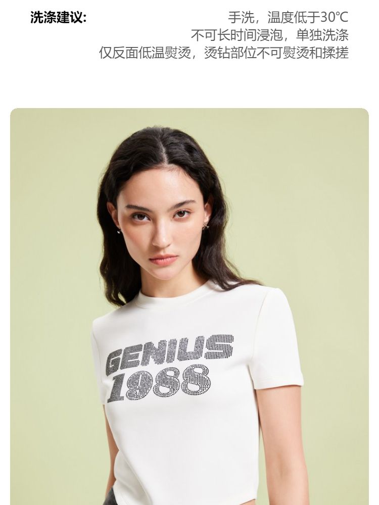 商品名称:【领部双车线】24夏短袖款T恤圆领短袖字母数字烫钻上衣T恤女 774801