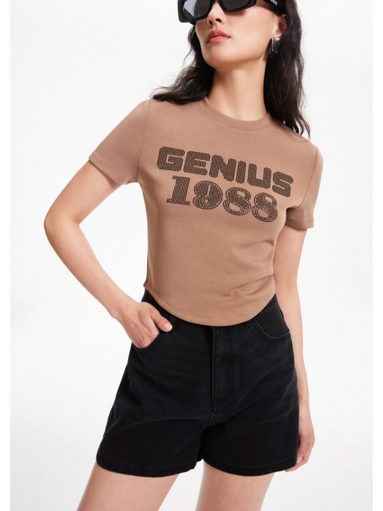 【领部双车线】24夏短袖款T恤圆领短袖字母数字烫钻上衣T恤女 774801