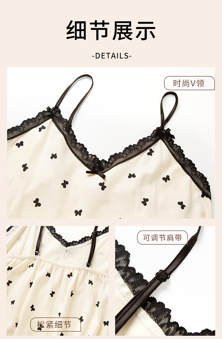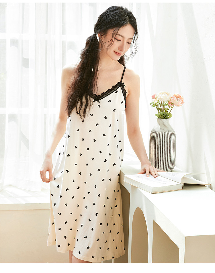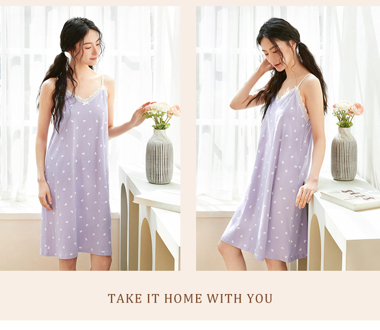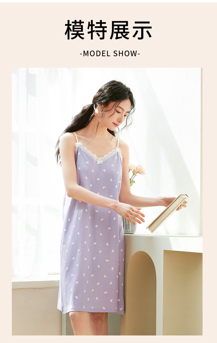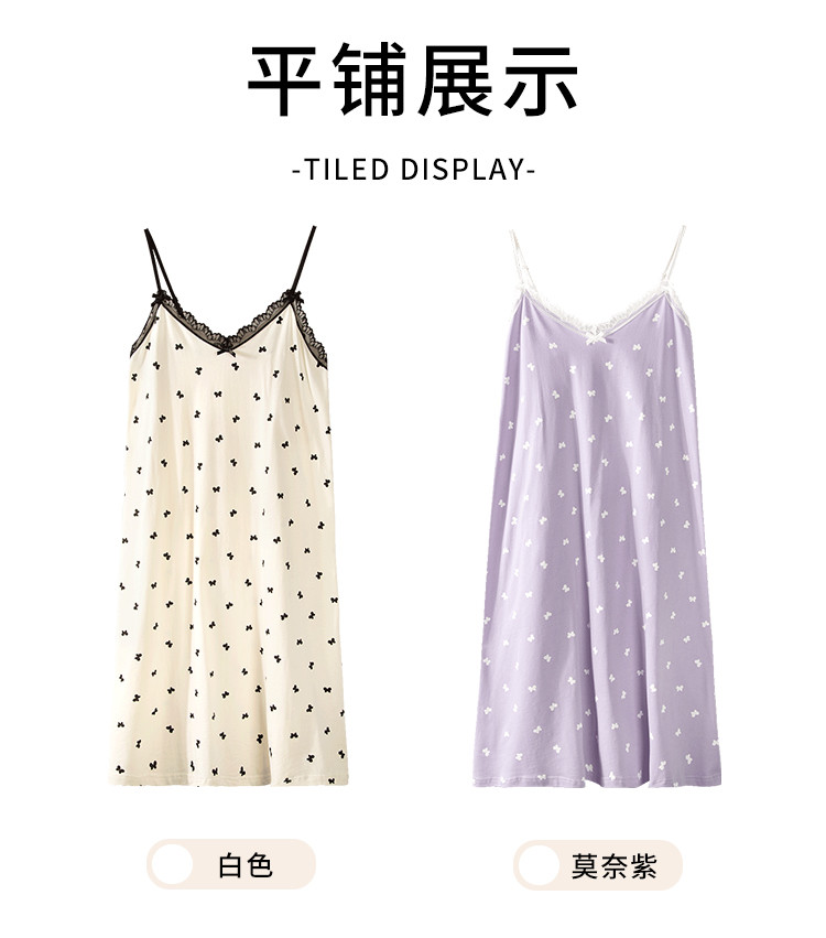 商品名称:【100%棉】V领无袖蕾丝边蝴蝶印花女士吊带睡裙清爽透气排汗 802507