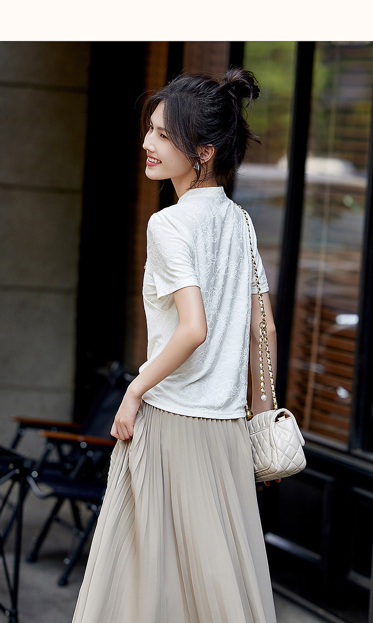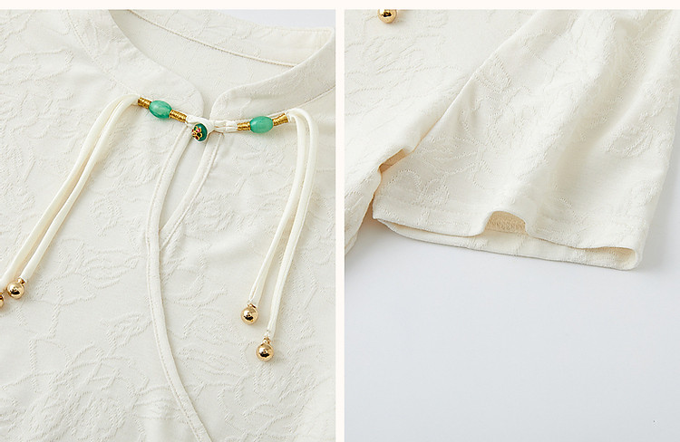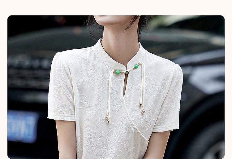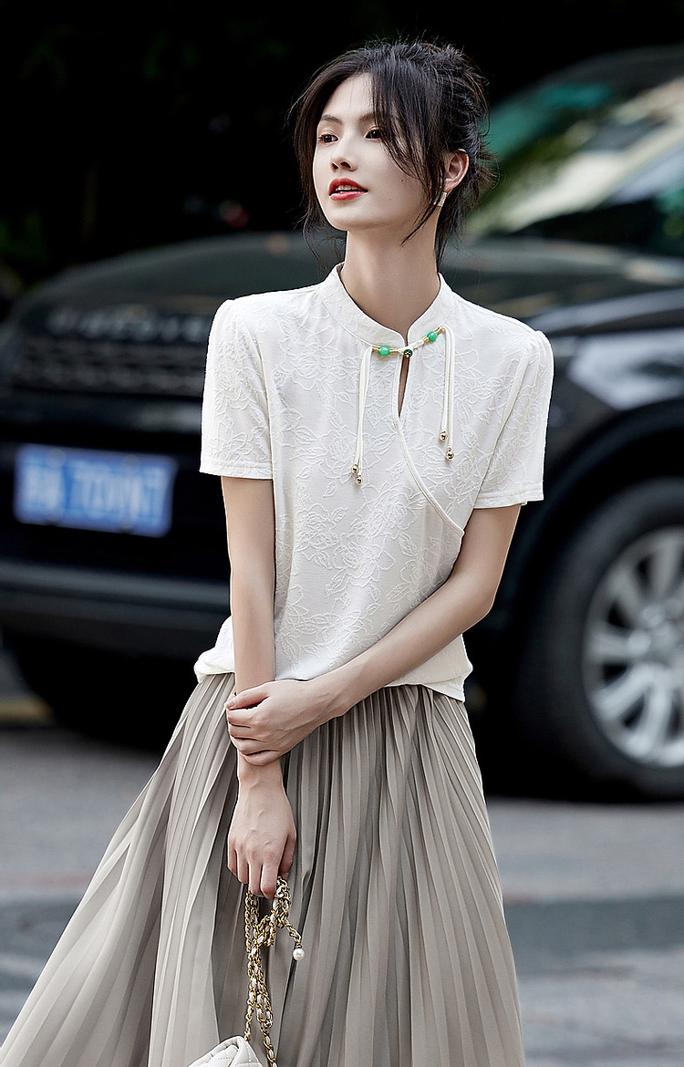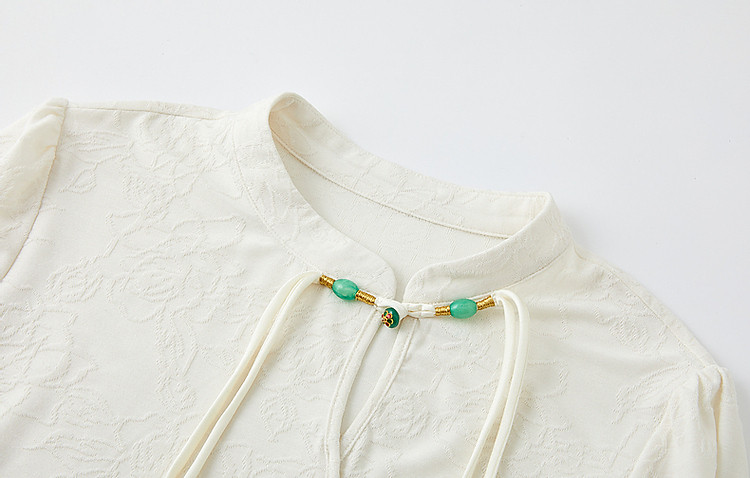 商品名称:【禅意匠心】夏国风新中式立领盘扣泡泡袖弹力舒适针织女式t恤 512897
