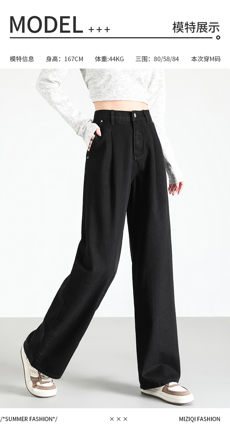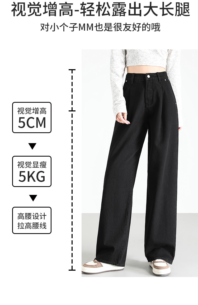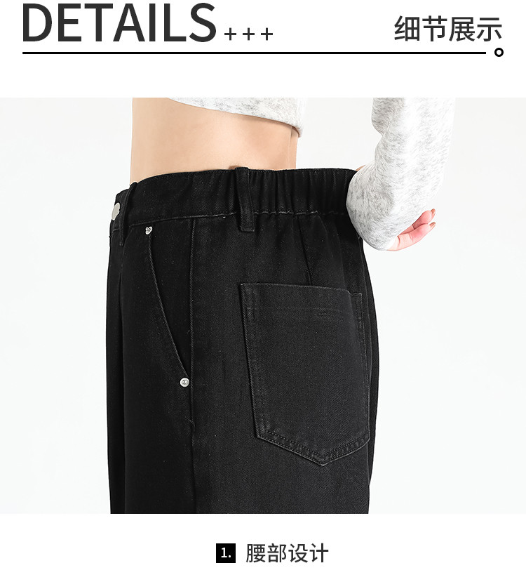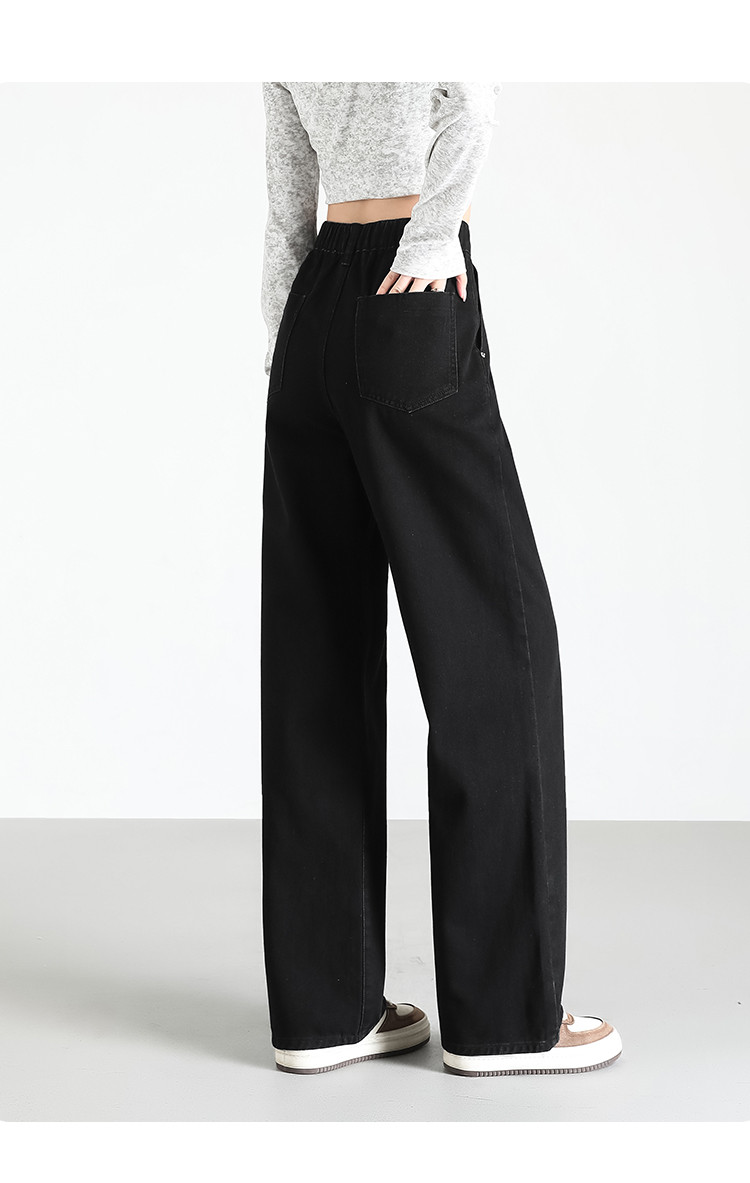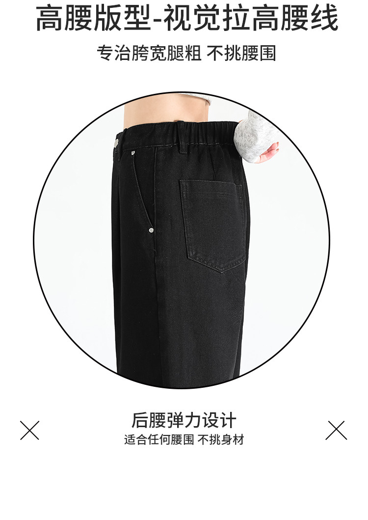 商品名称:米子旗秋冬女高腰牛仔裤松紧通勤穿搭舒适显瘦阔腿裤长裤 142170