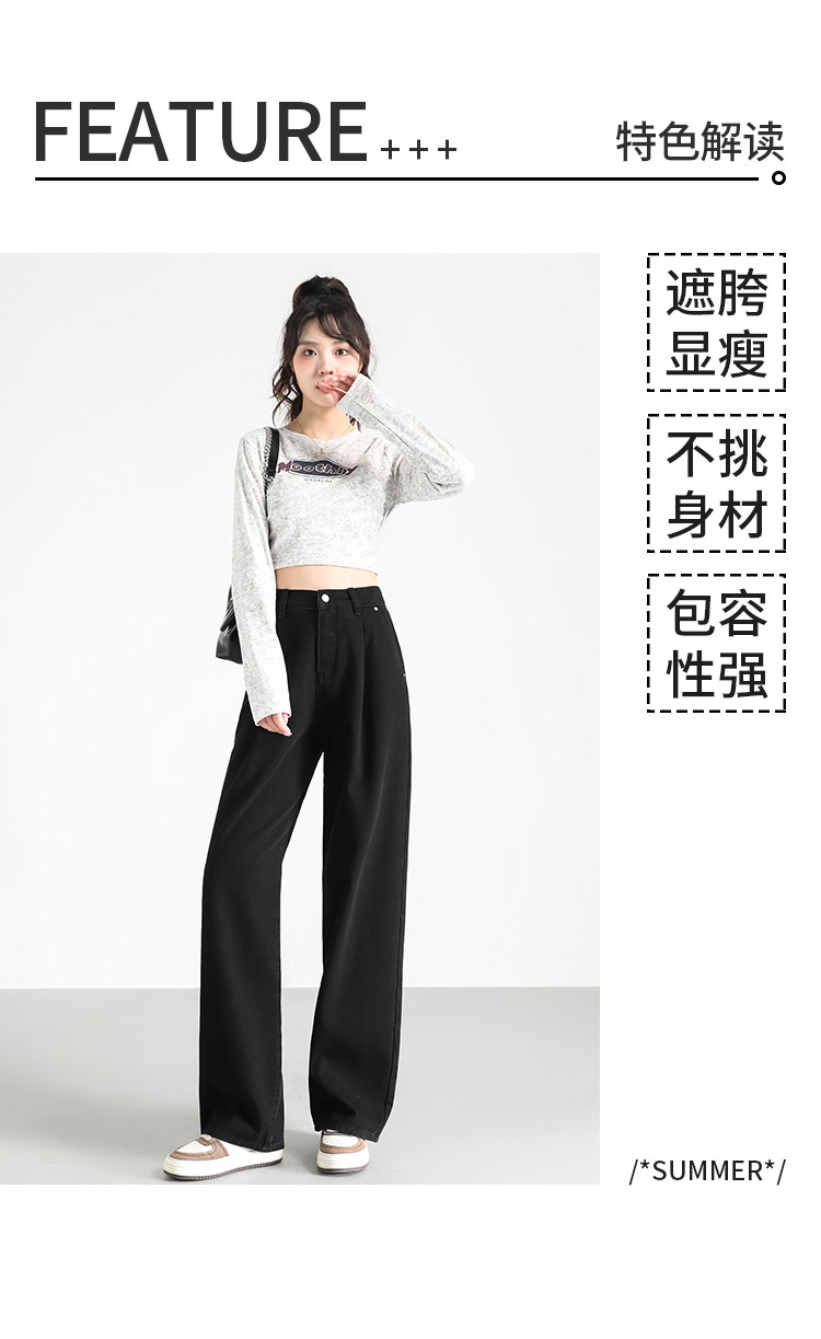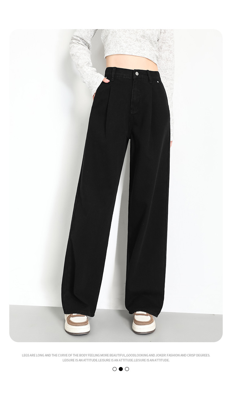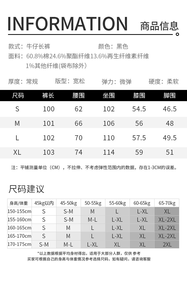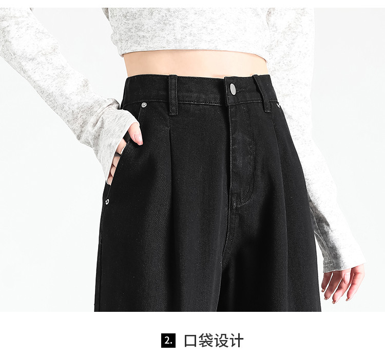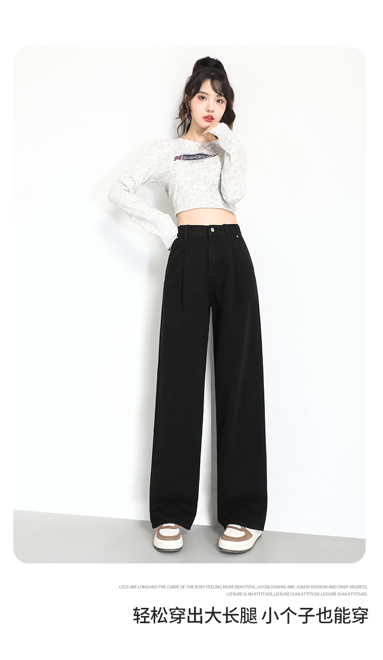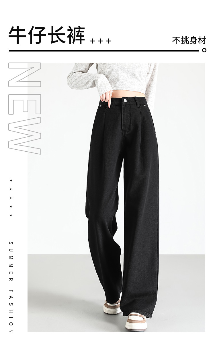 商品名称:米子旗秋冬女高腰牛仔裤松紧通勤穿搭舒适显瘦阔腿裤长裤 142170