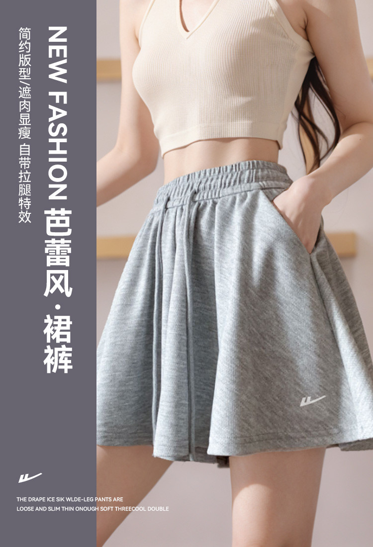 商品名称:【芭蕾风a字裙裤】夏季女高腰百褶垂感短裤防走光瑜伽阔腿裙裤 218003