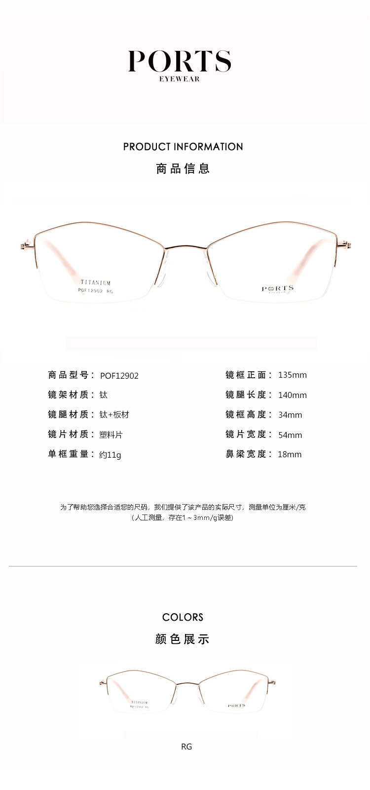 商品名称:PORTS女款轻奢优雅纯钛女士光学架POF12902 643786