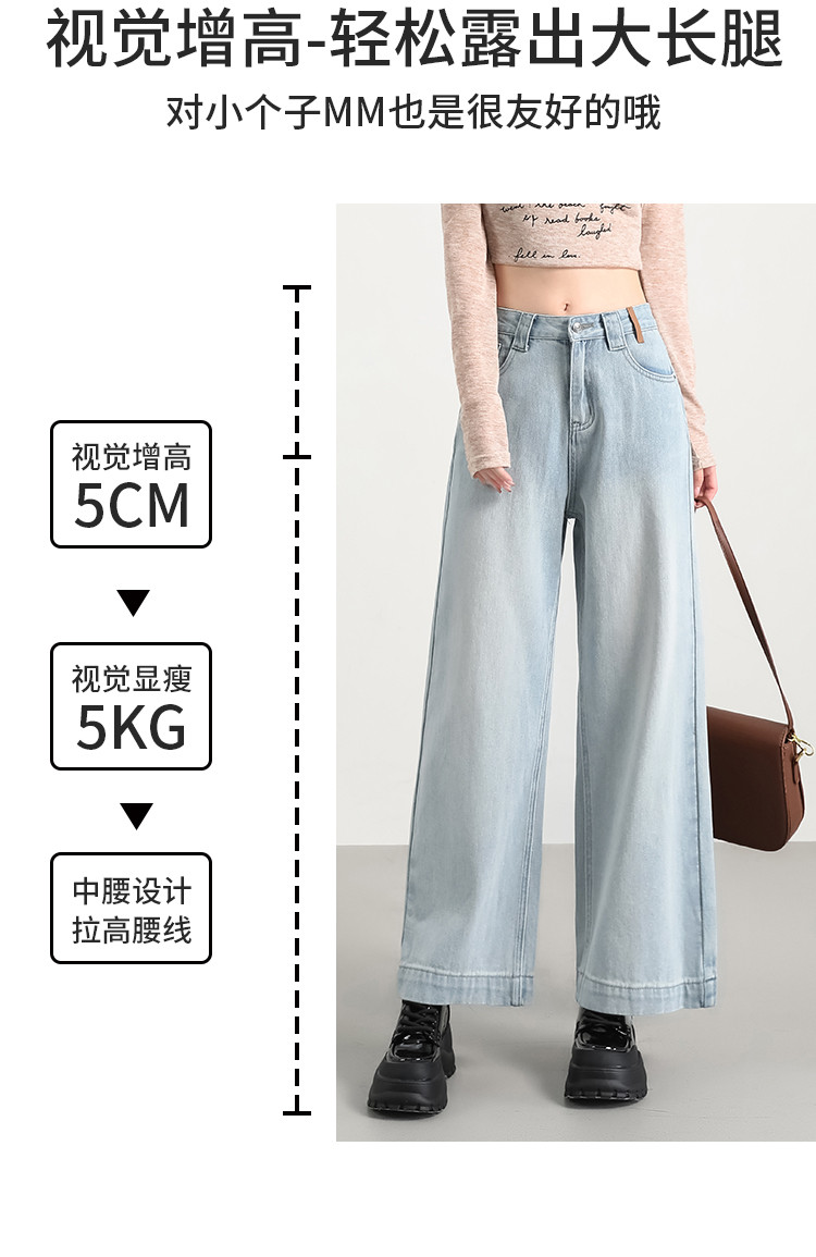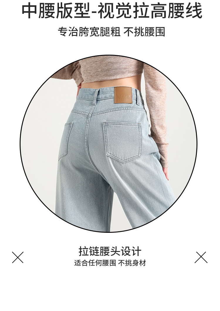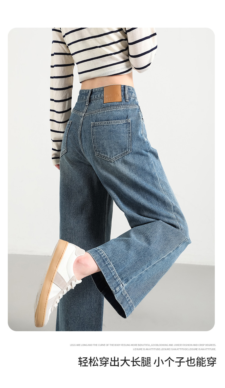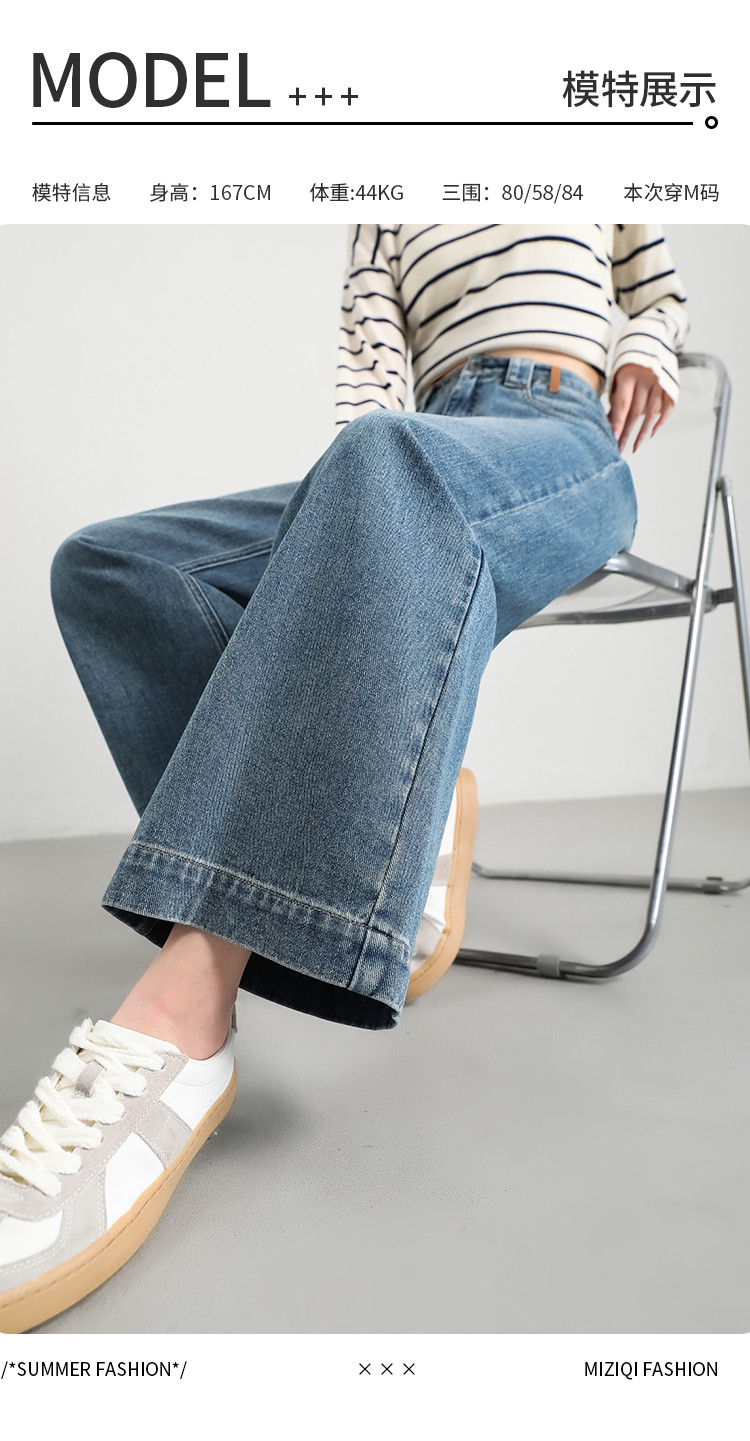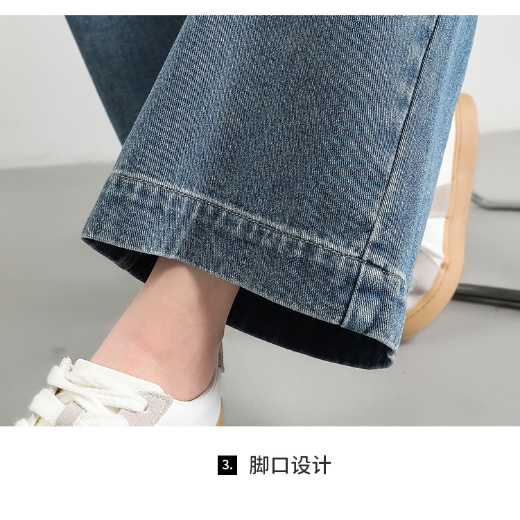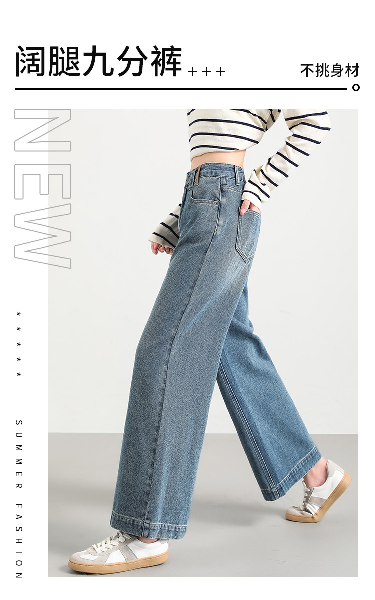 商品名称:米子旗秋冬女中腰牛仔裤通勤穿搭舒适显瘦九分阔腿裤长裤 269146