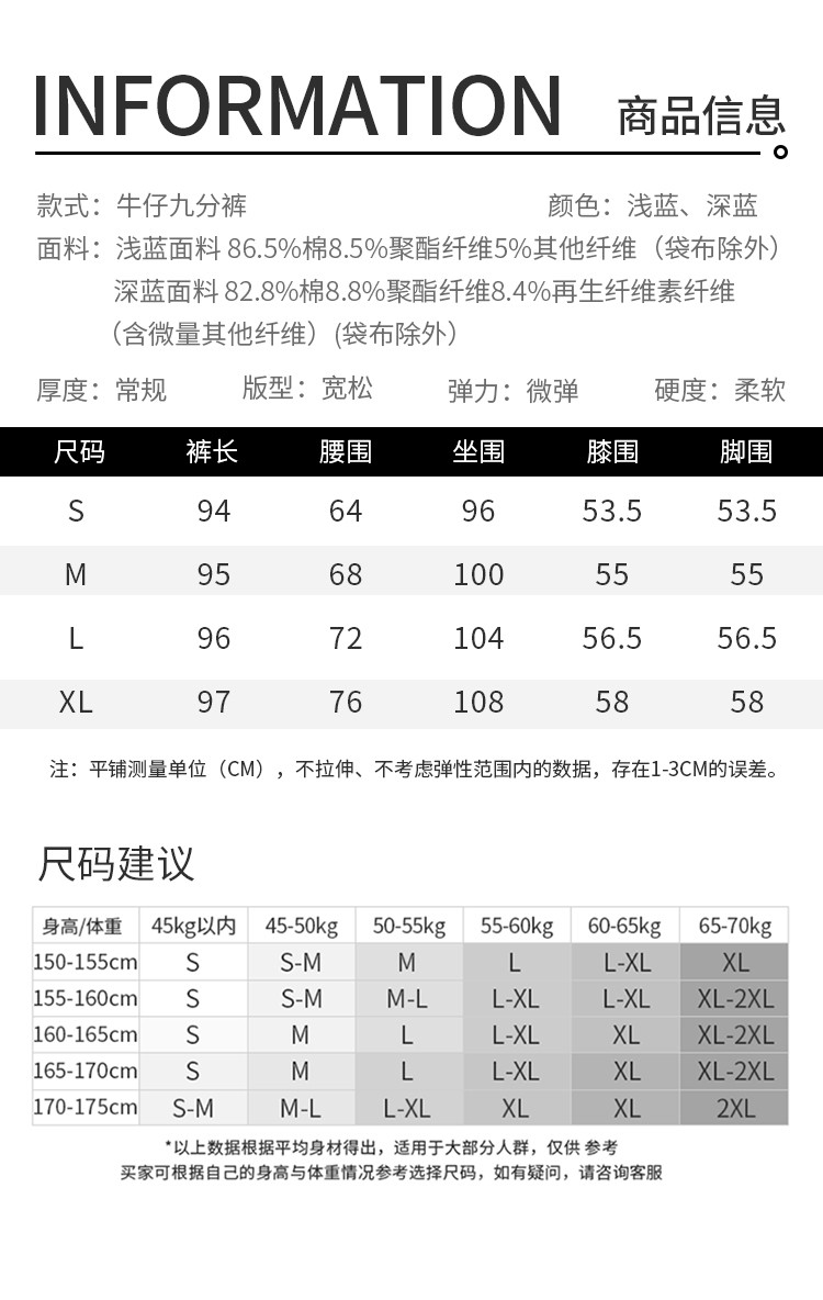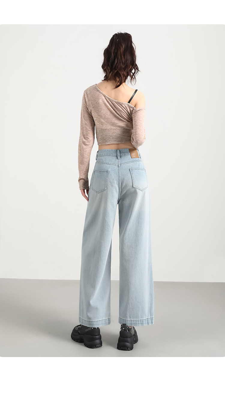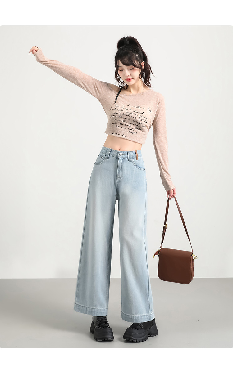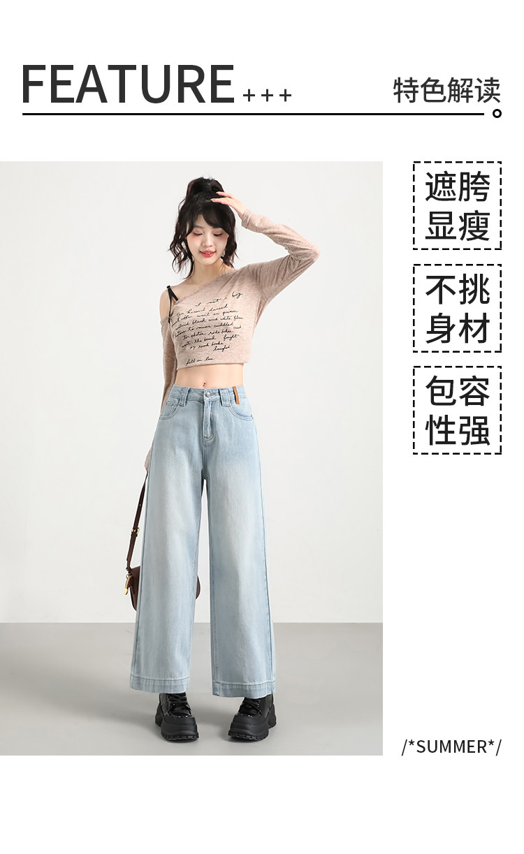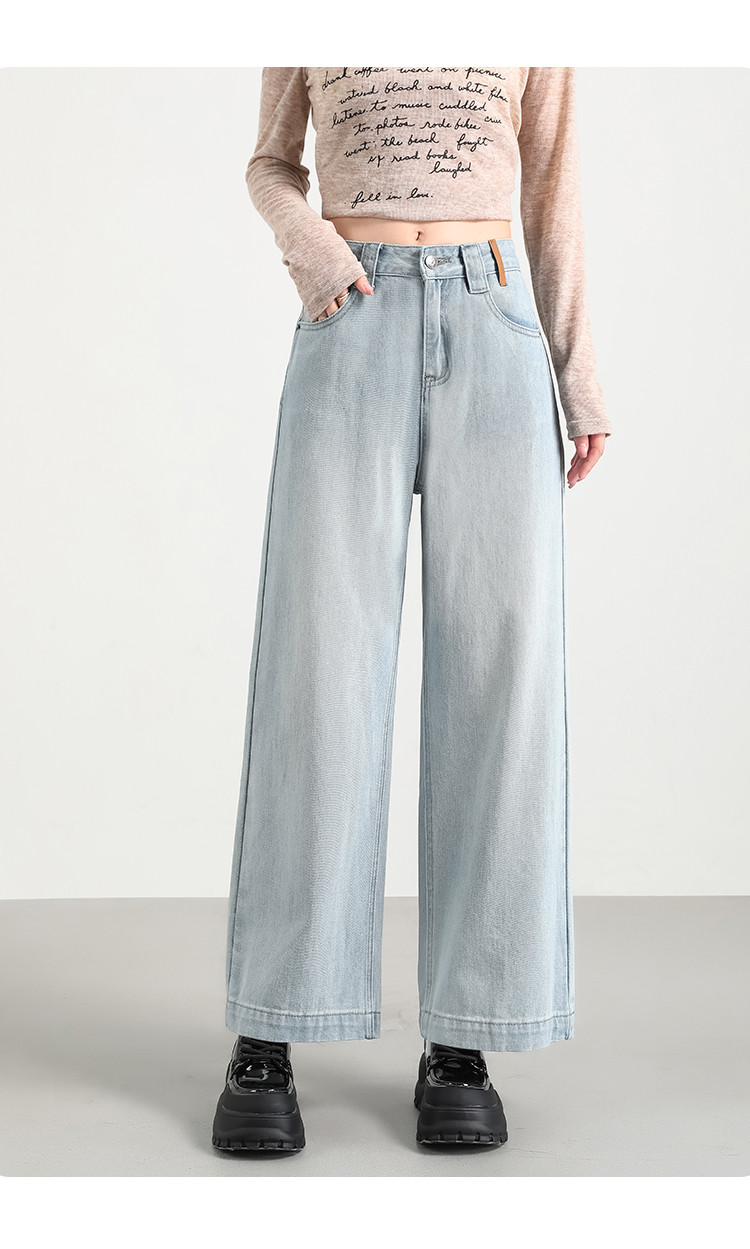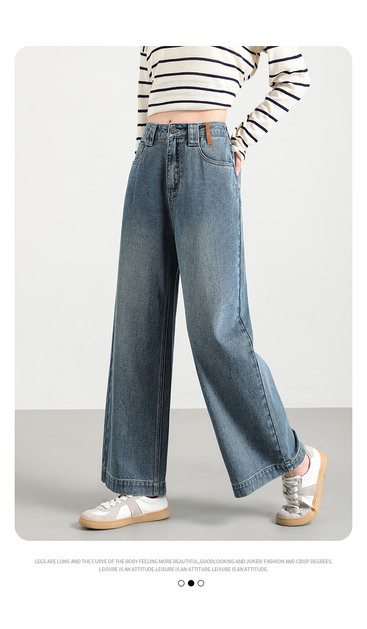 商品名称:米子旗秋冬女中腰牛仔裤通勤穿搭舒适显瘦九分阔腿裤长裤 269146
