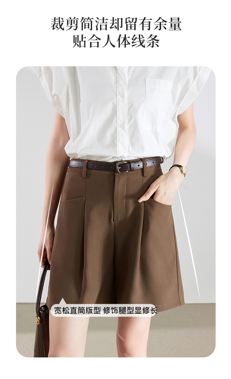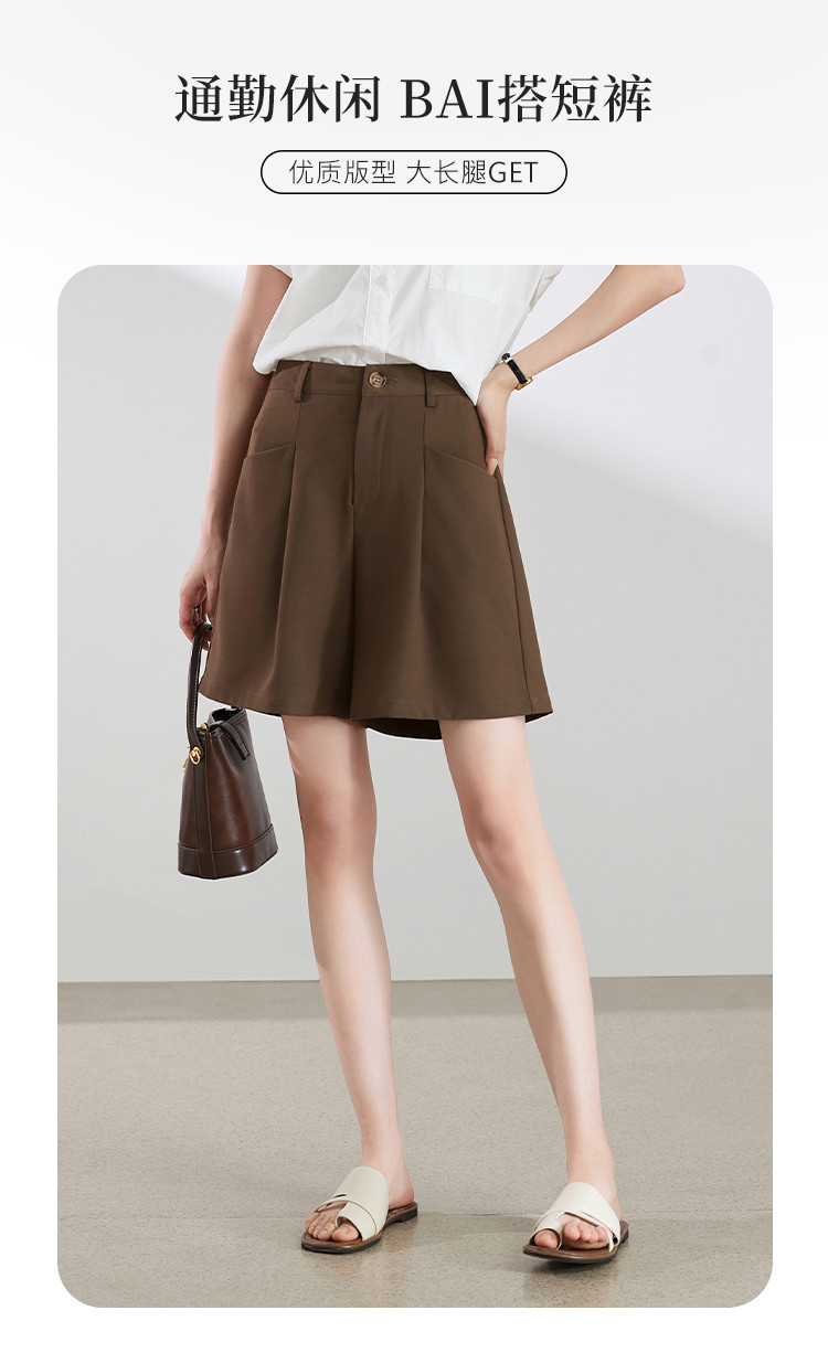 商品名称:【美拉德色系】A字显瘦阔腿西装短裤日常通勤高腰宽松女款五分裤 380033