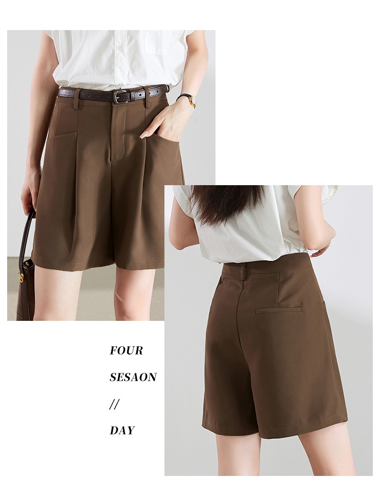 【美拉德色系】A字显瘦阔腿西装短裤日常通勤高腰宽松女款五分裤 380033