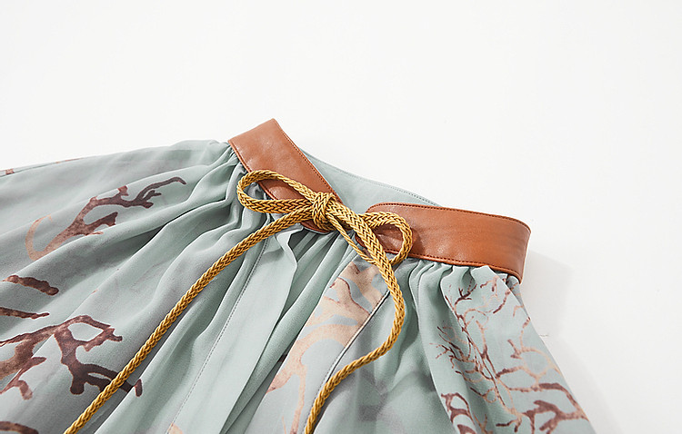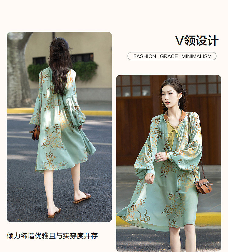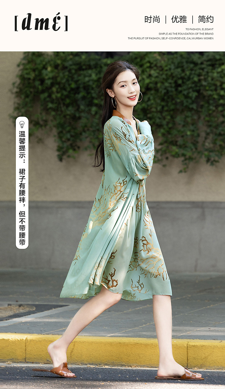 商品名称:【波西米亚沙滩裙】夏比基尼外搭V领飘带雪纺大摆抽褶印花连衣裙 181185
