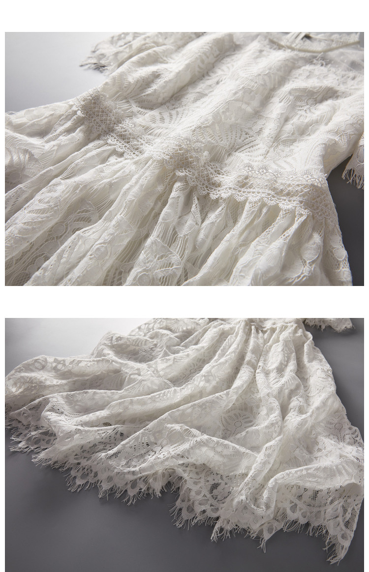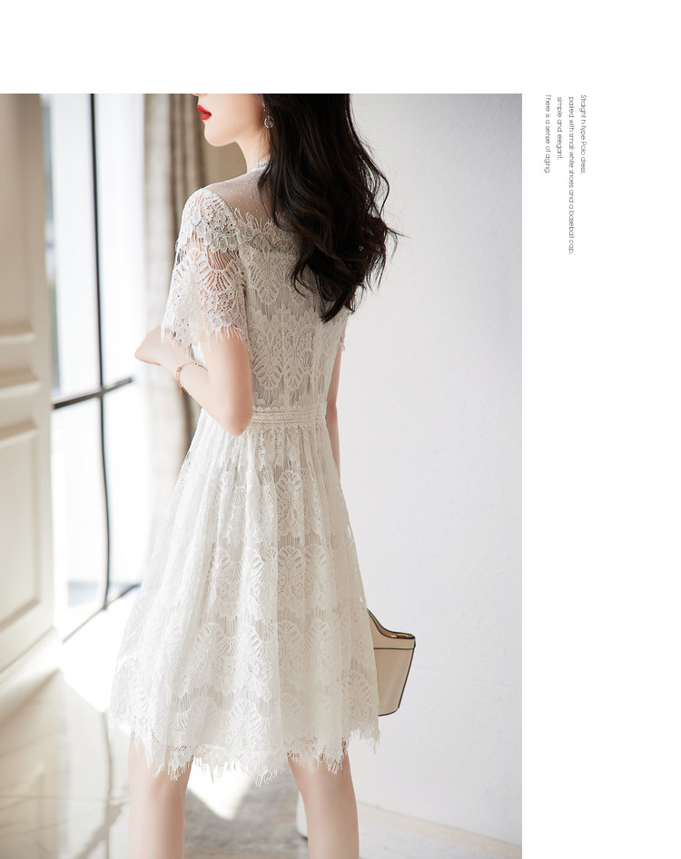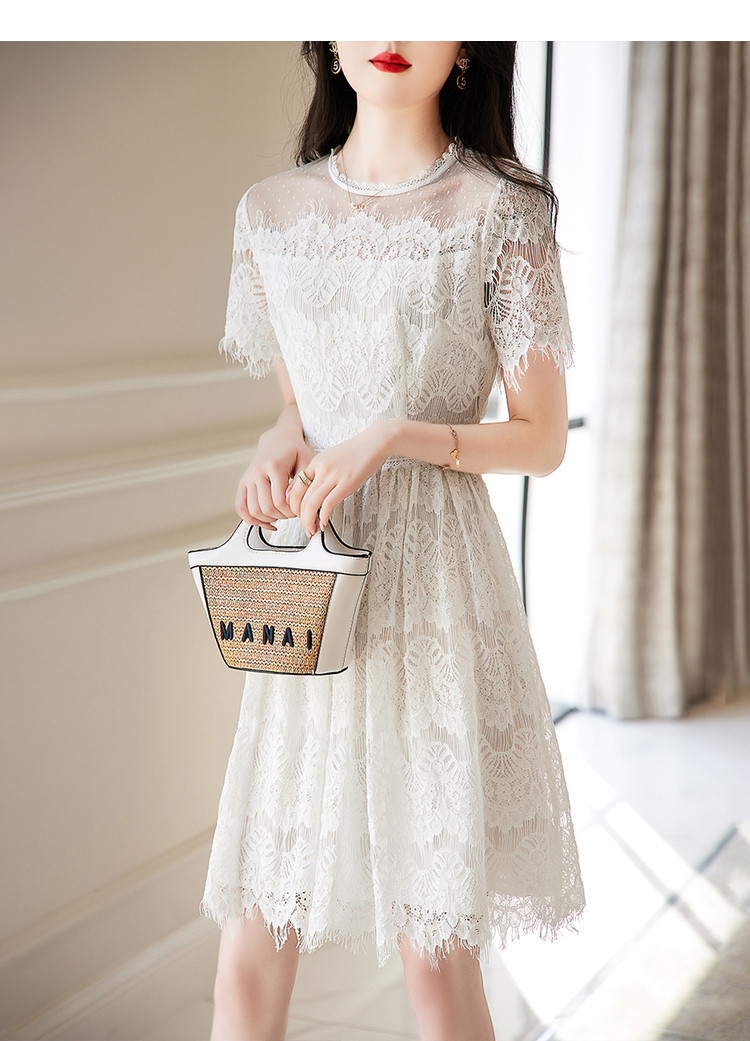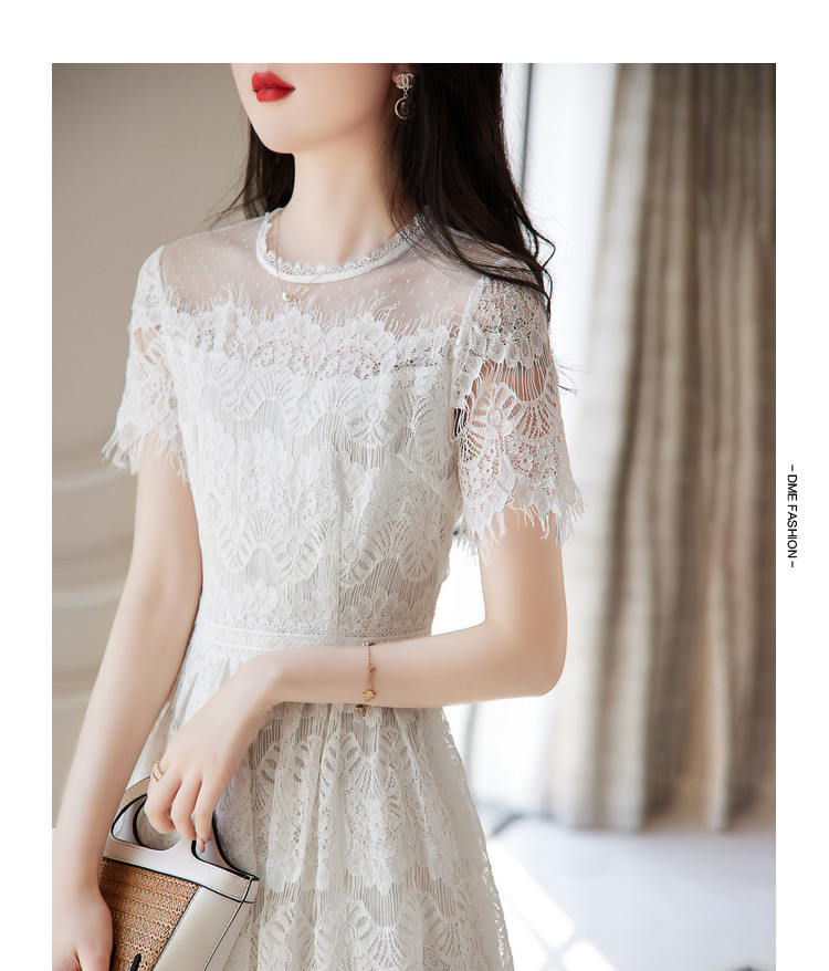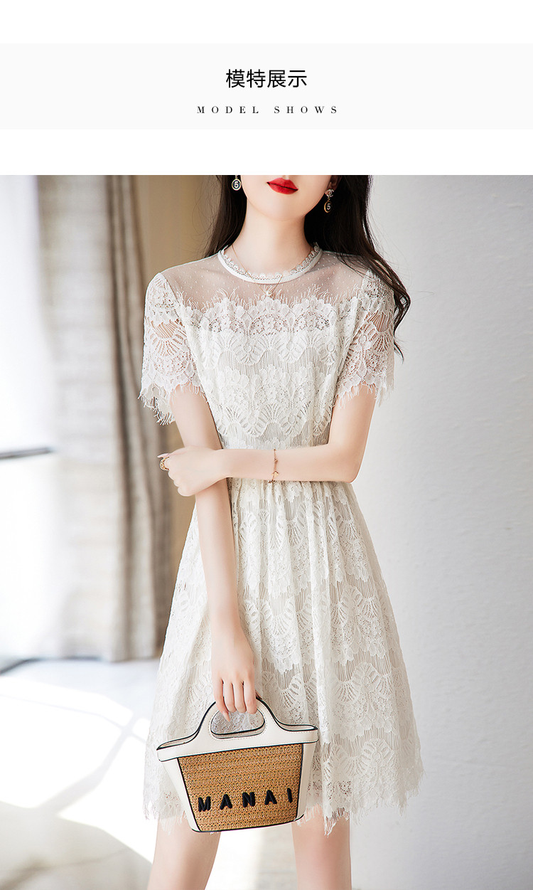 商品名称:【蕾丝拼接】夏圆领合体不规则须边修身裙子连衣裙女夏 022913