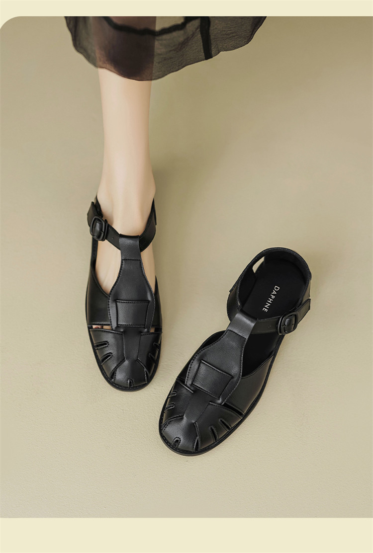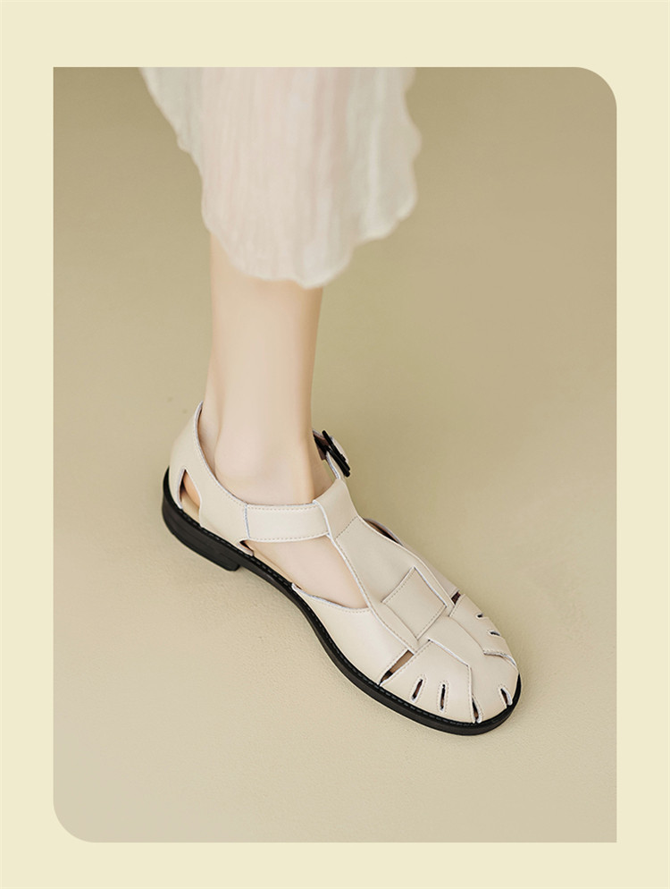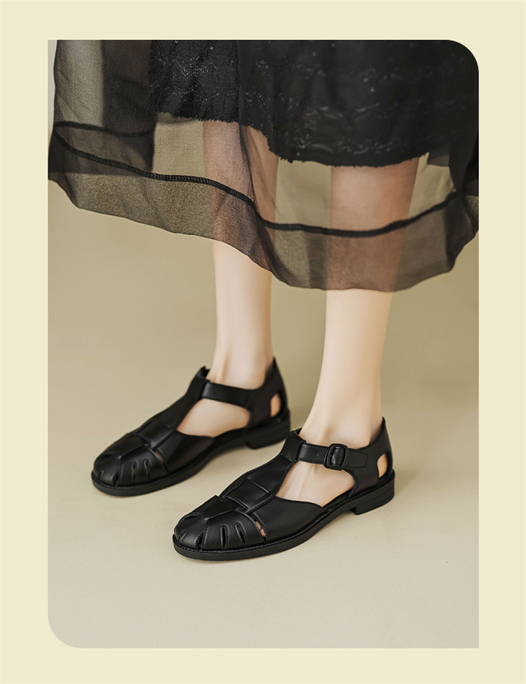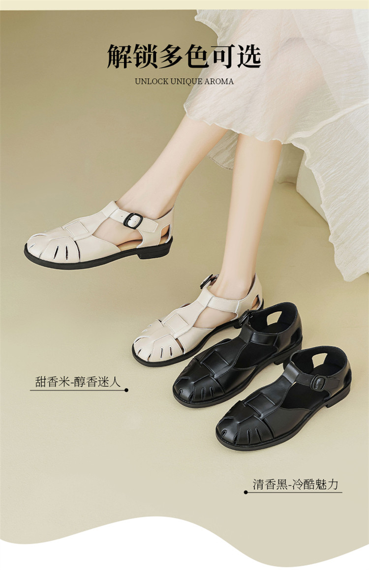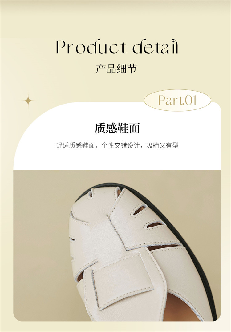 夏季简约百搭舒适镂空编织透气低跟猪笼鞋外穿休闲包头凉鞋女鞋子 085786