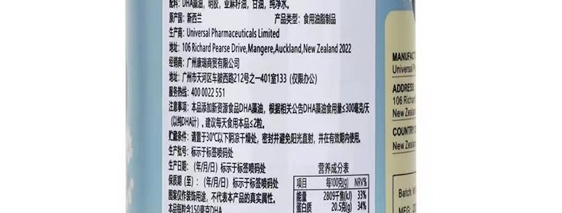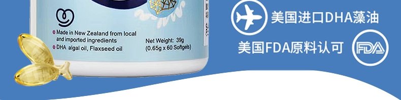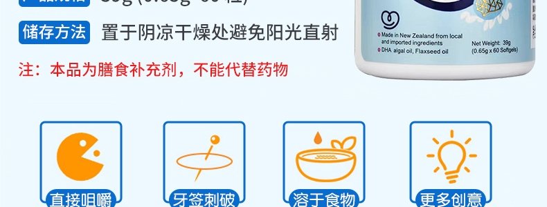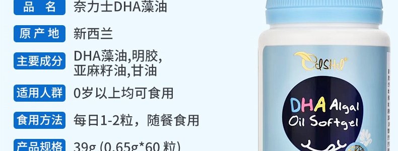 商品名称:新西兰 奈力士 DHA藻油软胶囊 39g/瓶