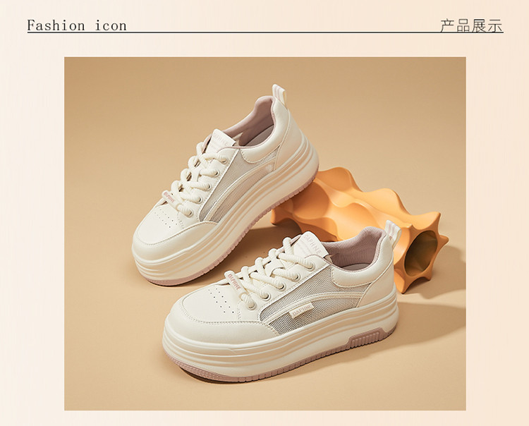 商品名称:2025夏季爆款网面透气厚底板鞋简约设计女鞋休闲运动鞋小白鞋 428442