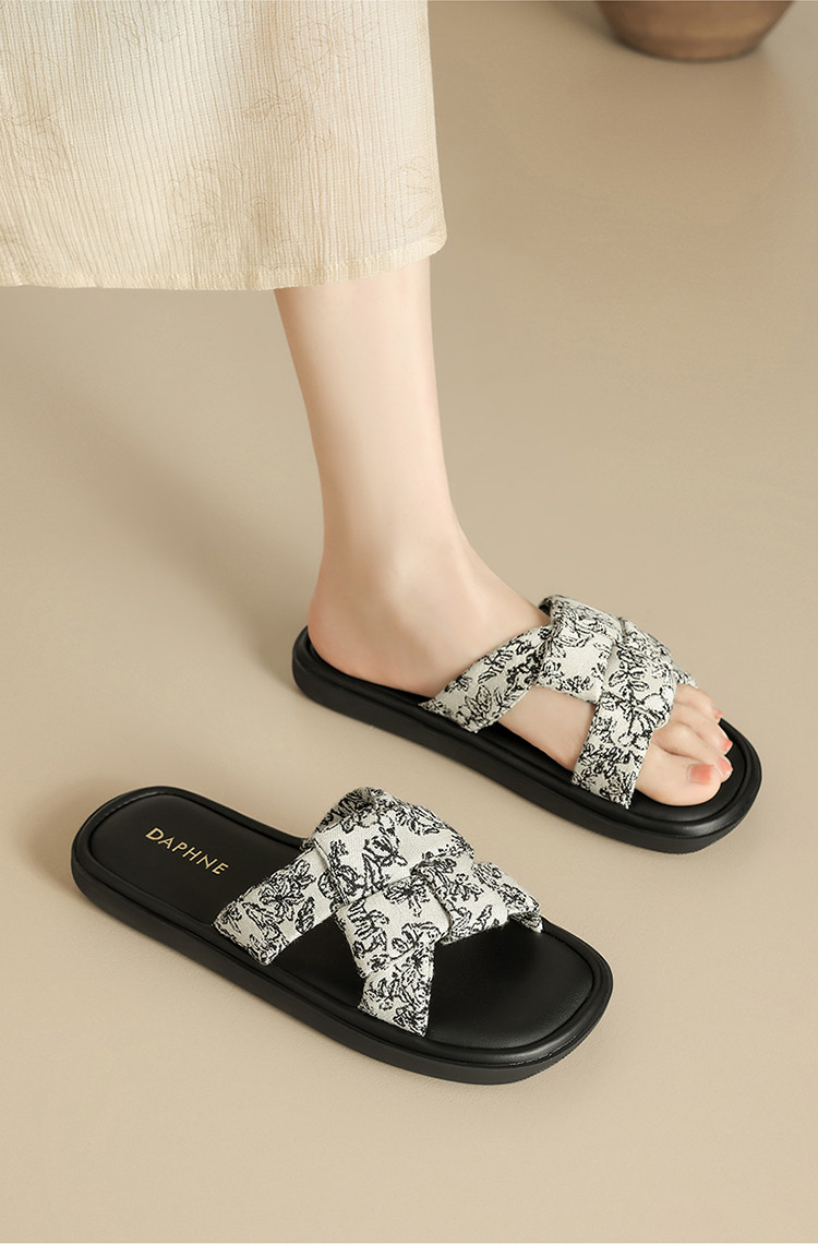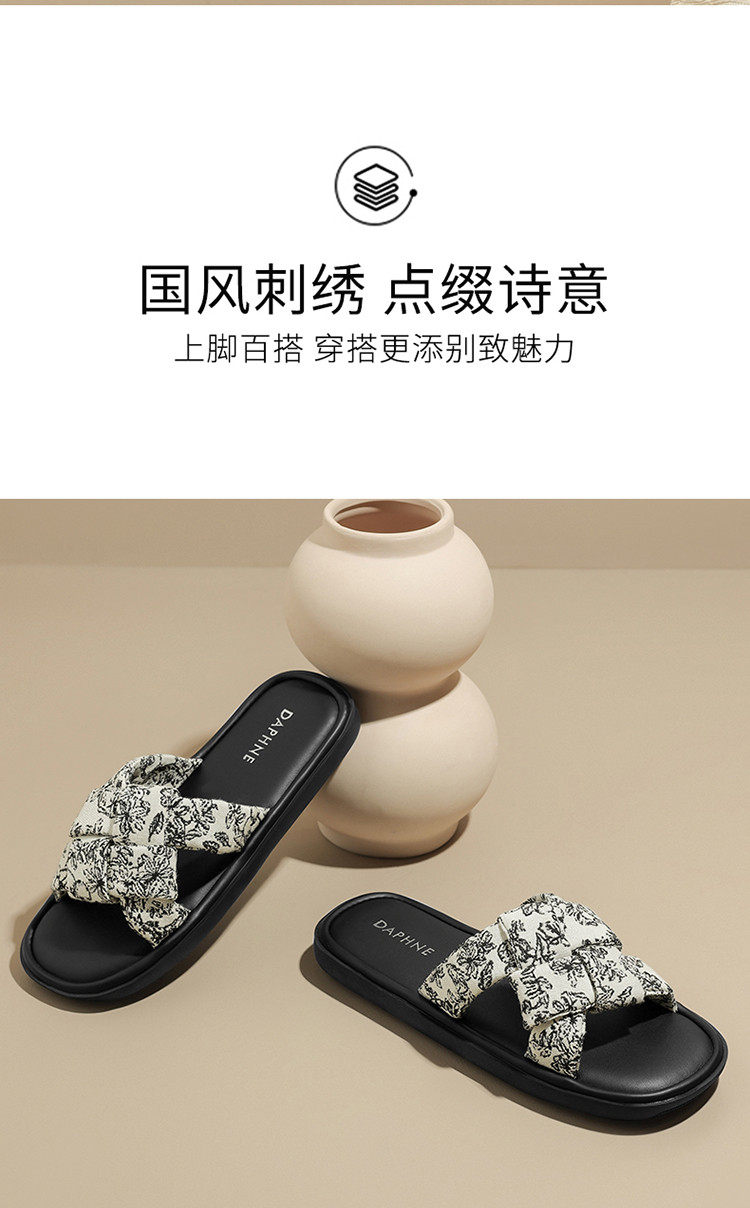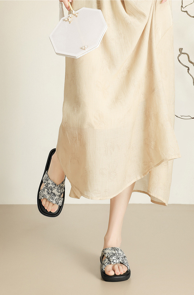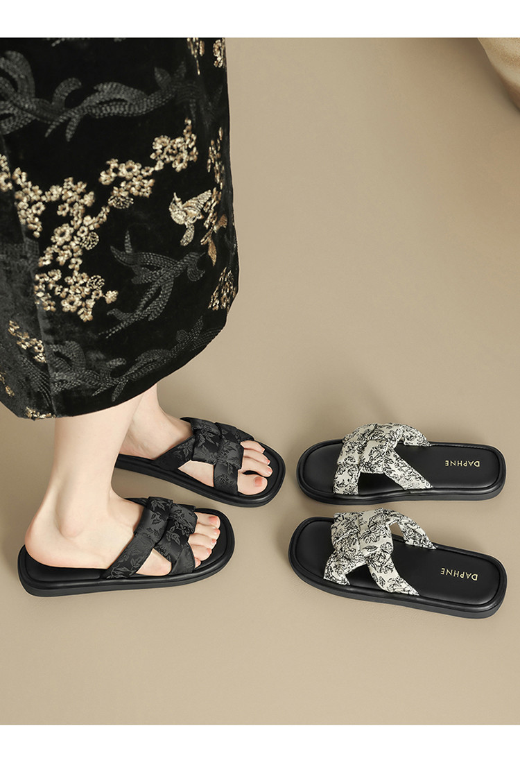 新中式印花女鞋夏季百搭时装拖鞋交叉编织外穿拖鞋居家拖鞋沙滩鞋 670039
