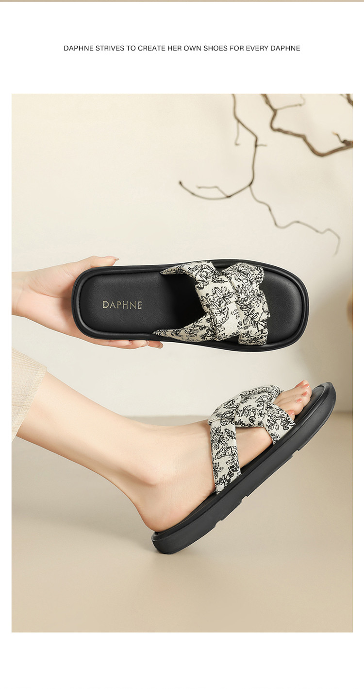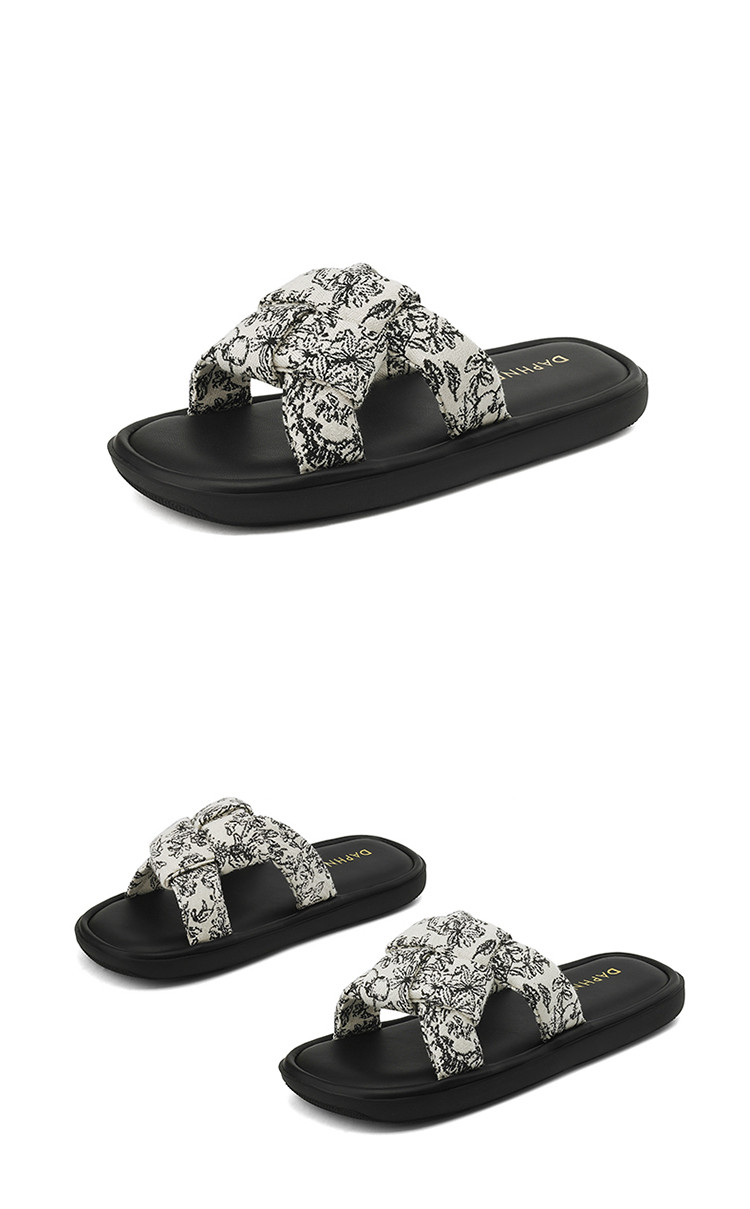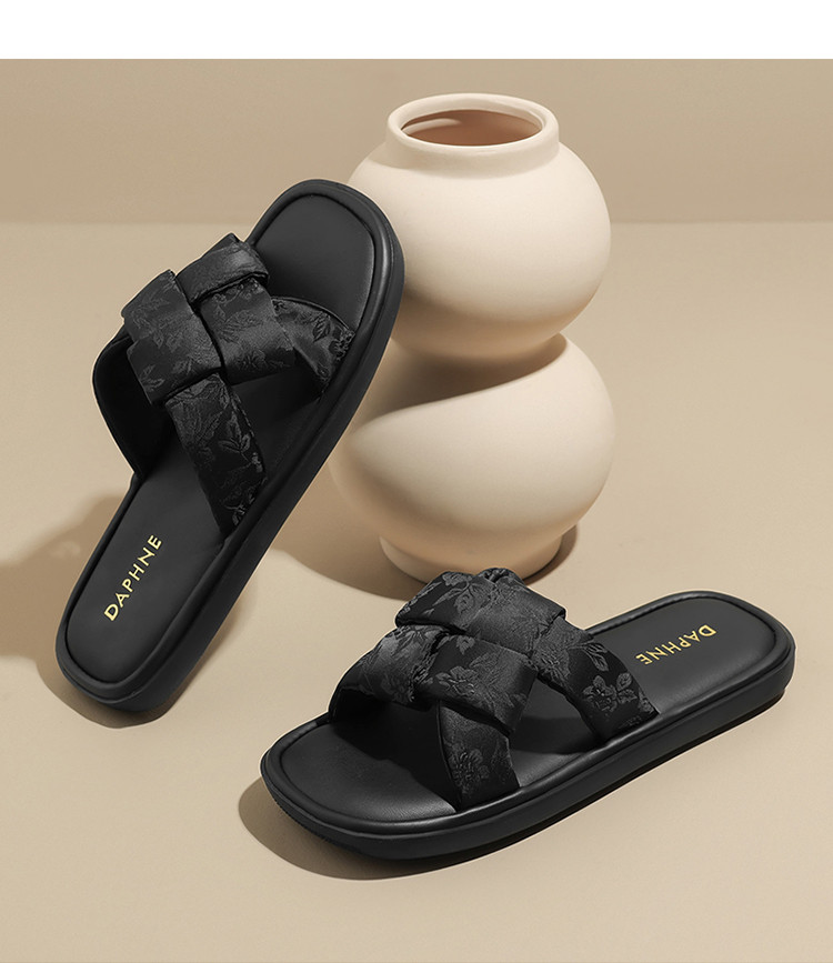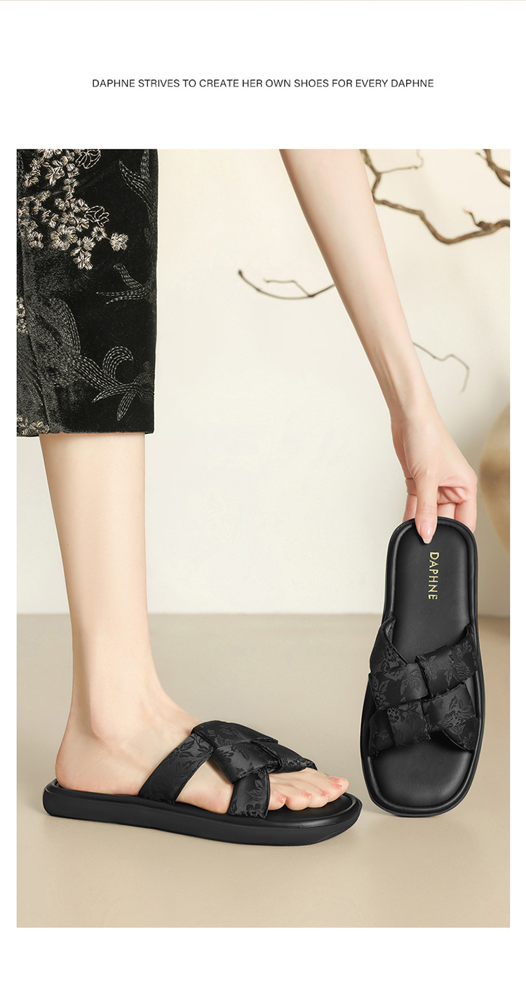 新中式印花女鞋夏季百搭时装拖鞋交叉编织外穿拖鞋居家拖鞋沙滩鞋 670039