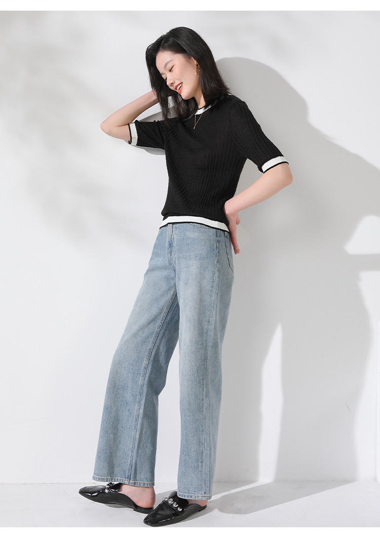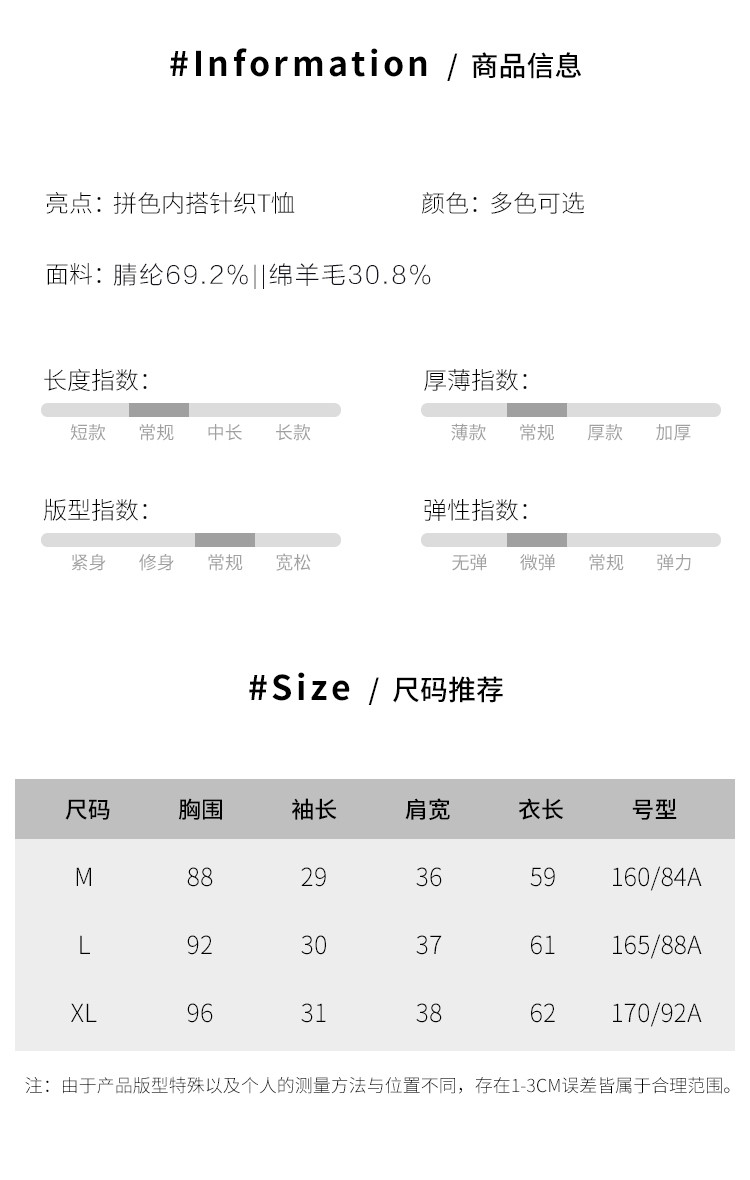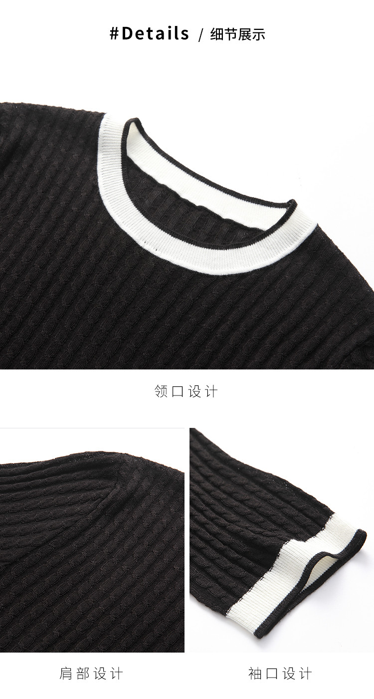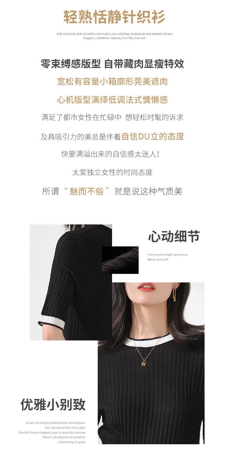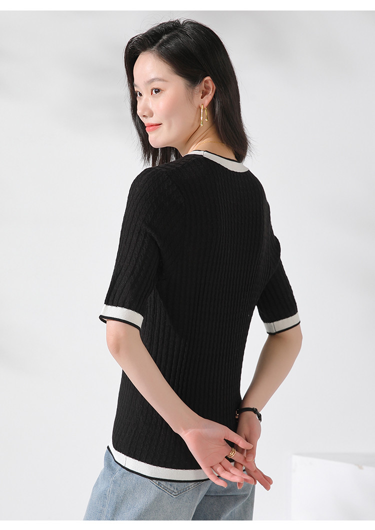 商品名称:【含羊毛 时尚抽条】圆领拼色上衣内搭短袖针织杉女打底衫T恤 808211