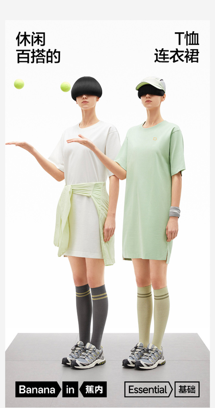 基础303Go女士圆领T恤连衣裙棉感舒适休闲宽松短袖春夏 084421