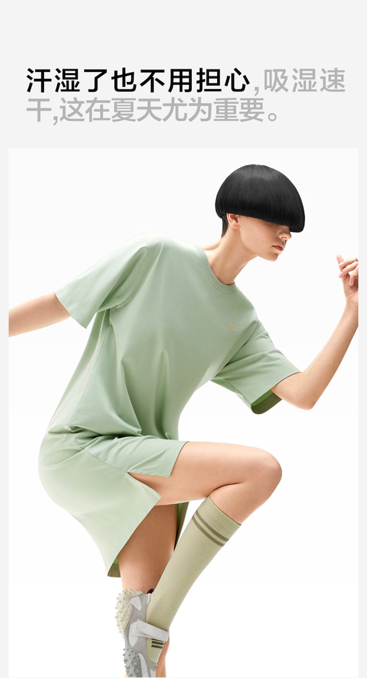 商品名称:基础303Go女士圆领T恤连衣裙棉感舒适休闲宽松短袖春夏 084421