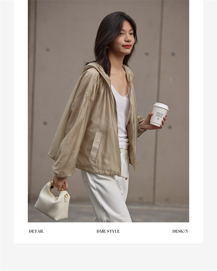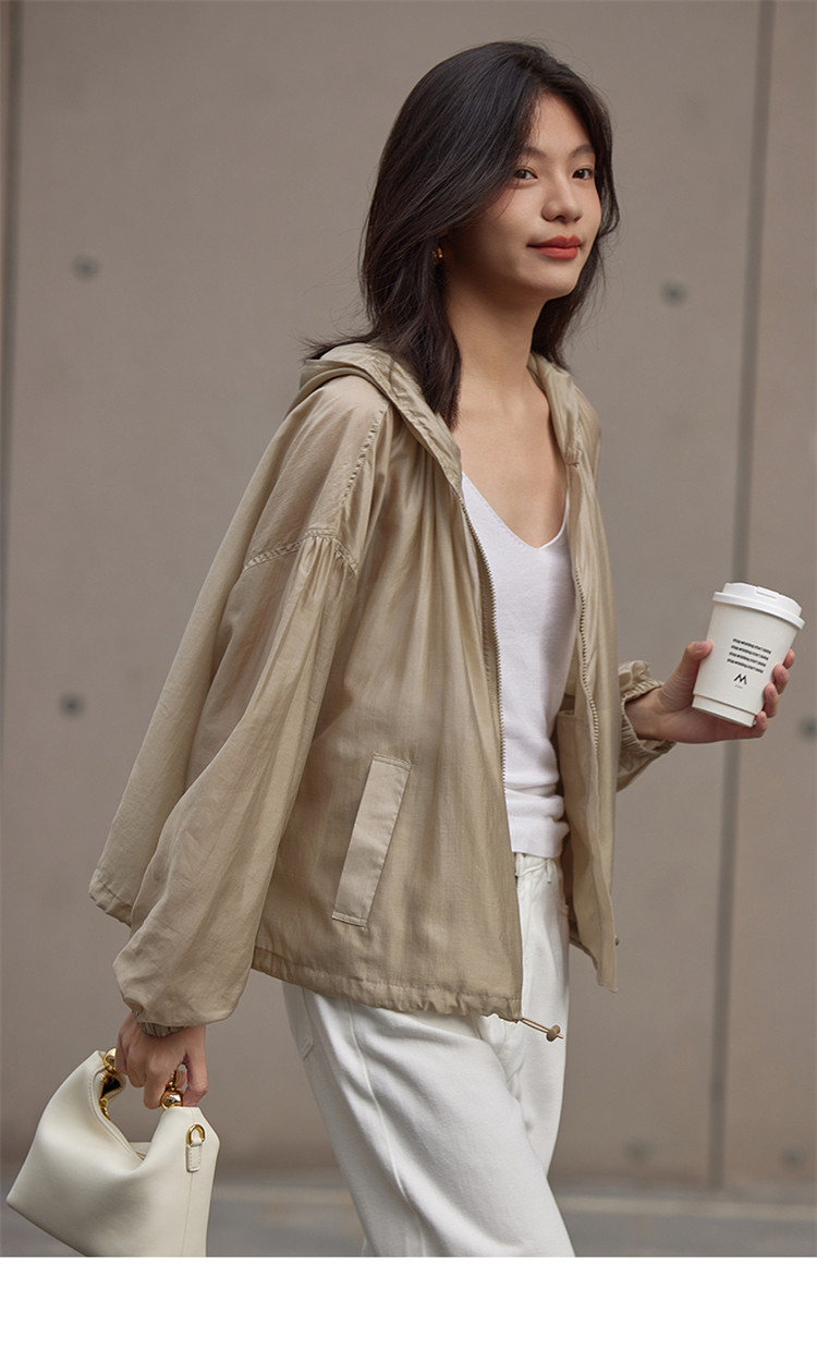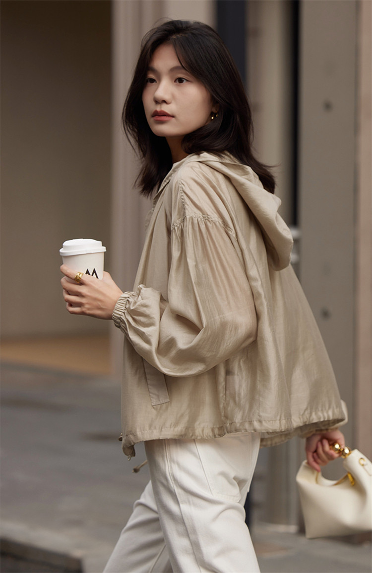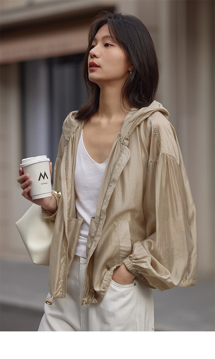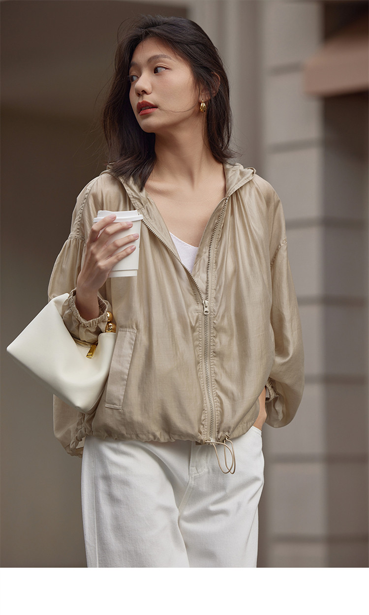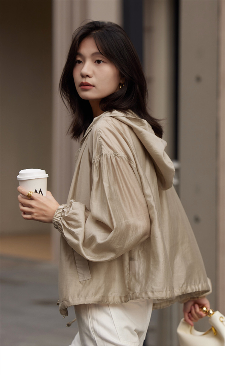 【天丝轻薄外套】春款泡泡袖连帽轻薄长袖天丝外套女 775810