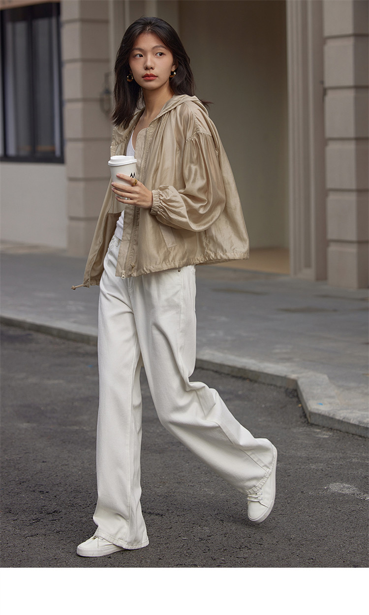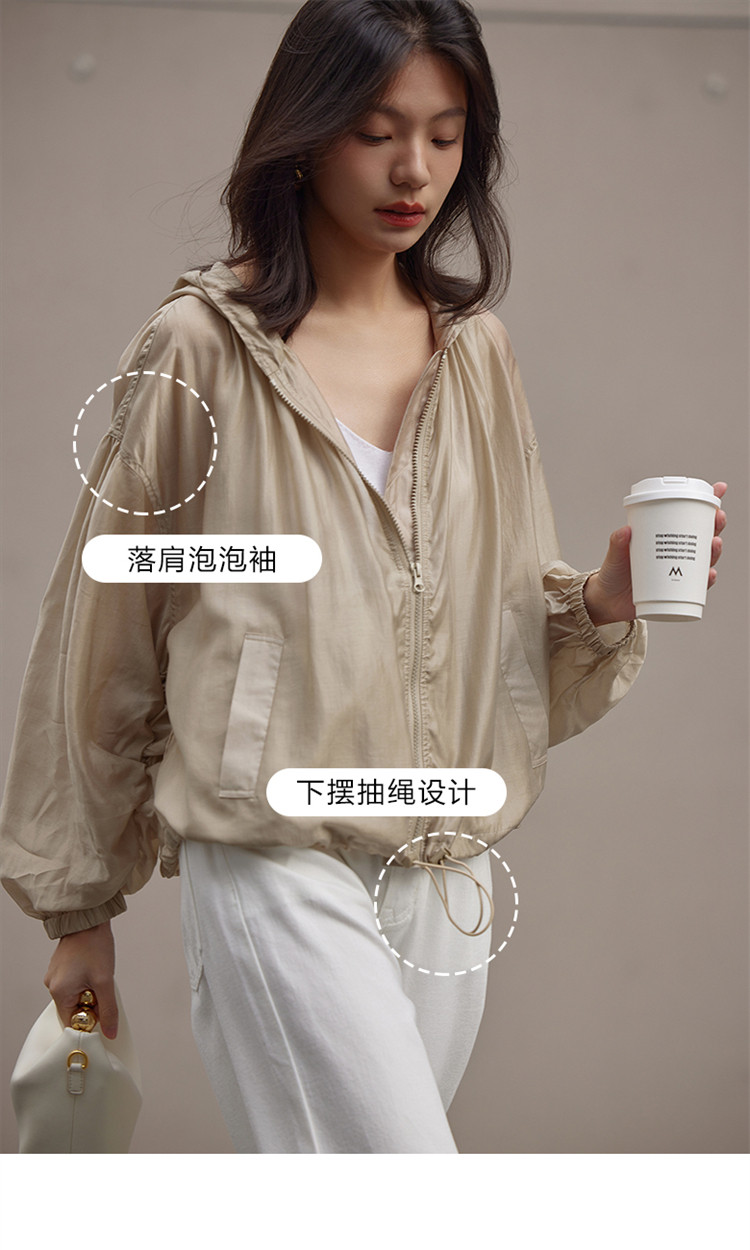 商品名称:【天丝轻薄外套】春款泡泡袖连帽轻薄长袖天丝外套女 775810