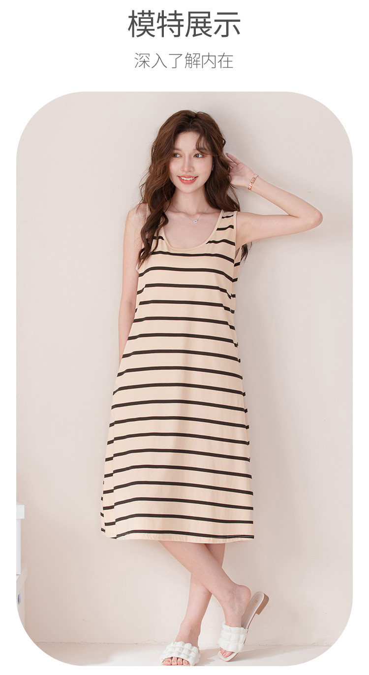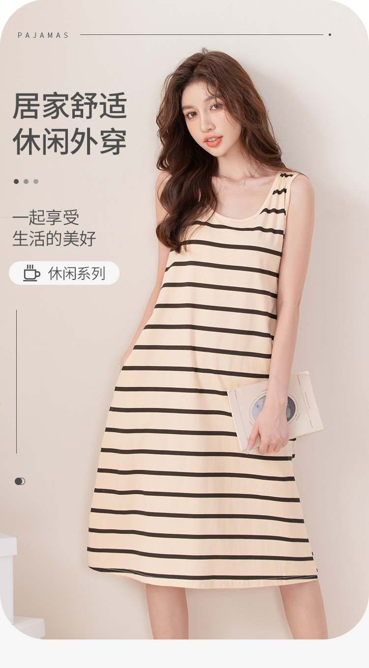 商品名称:【100%棉】无袖睡裙女宽松舒适条纹背心裙女士睡衣可外穿 304139