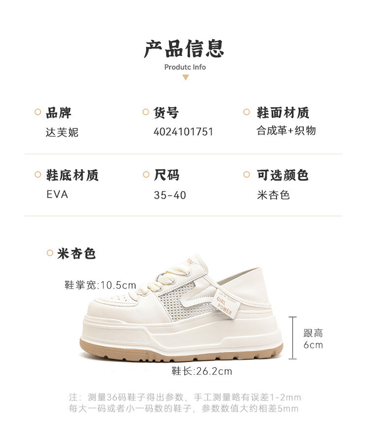 商品名称:春夏百搭简约风小白鞋女厚底学生鞋时尚板鞋轻便舒适休闲运动鞋 504727