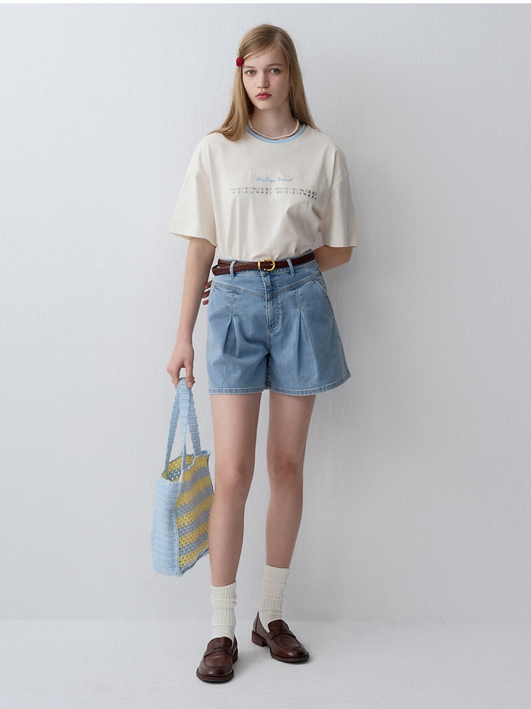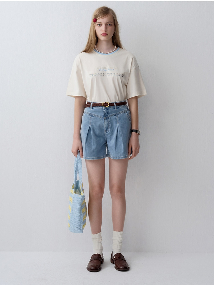 【舒弹有型】小熊夏季款高腰牛仔短裤宽松女装 368129