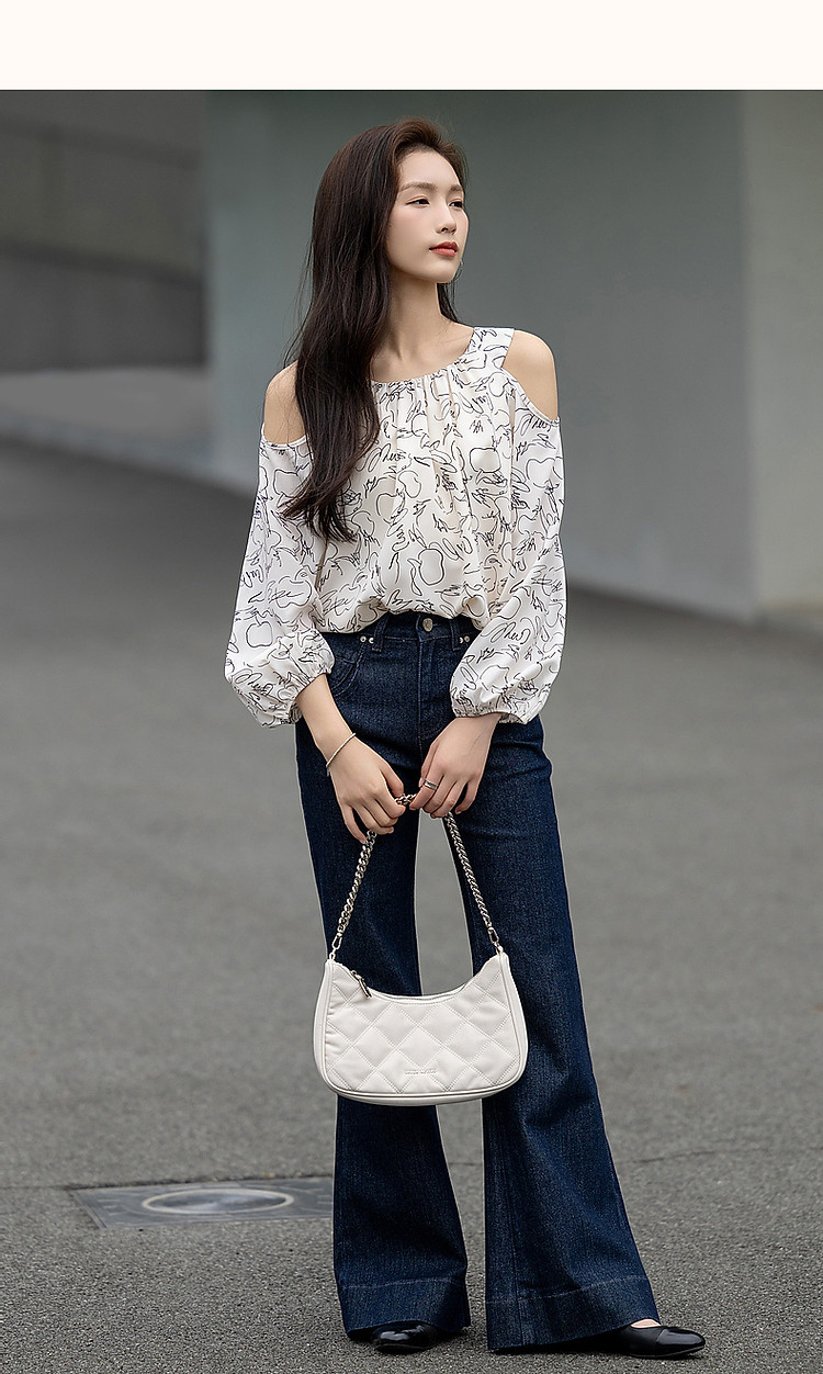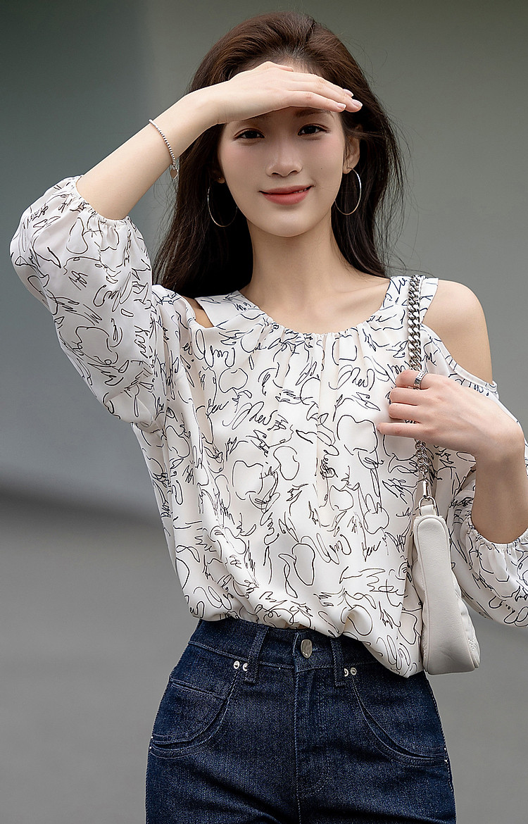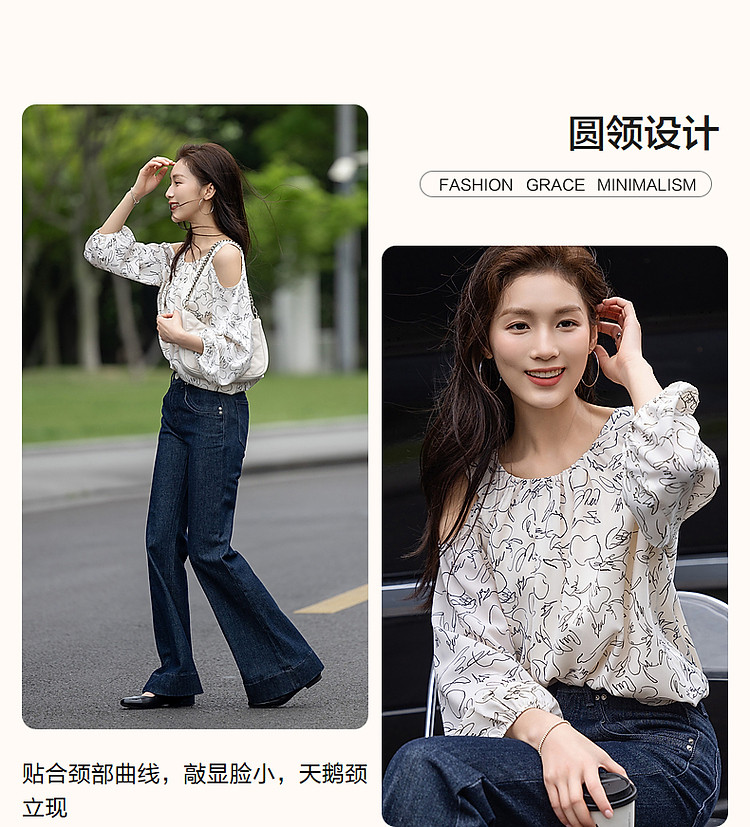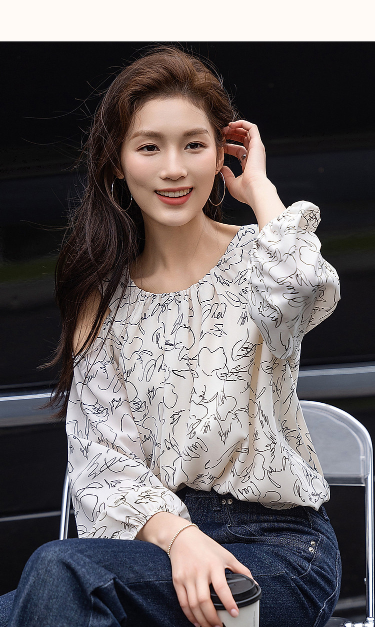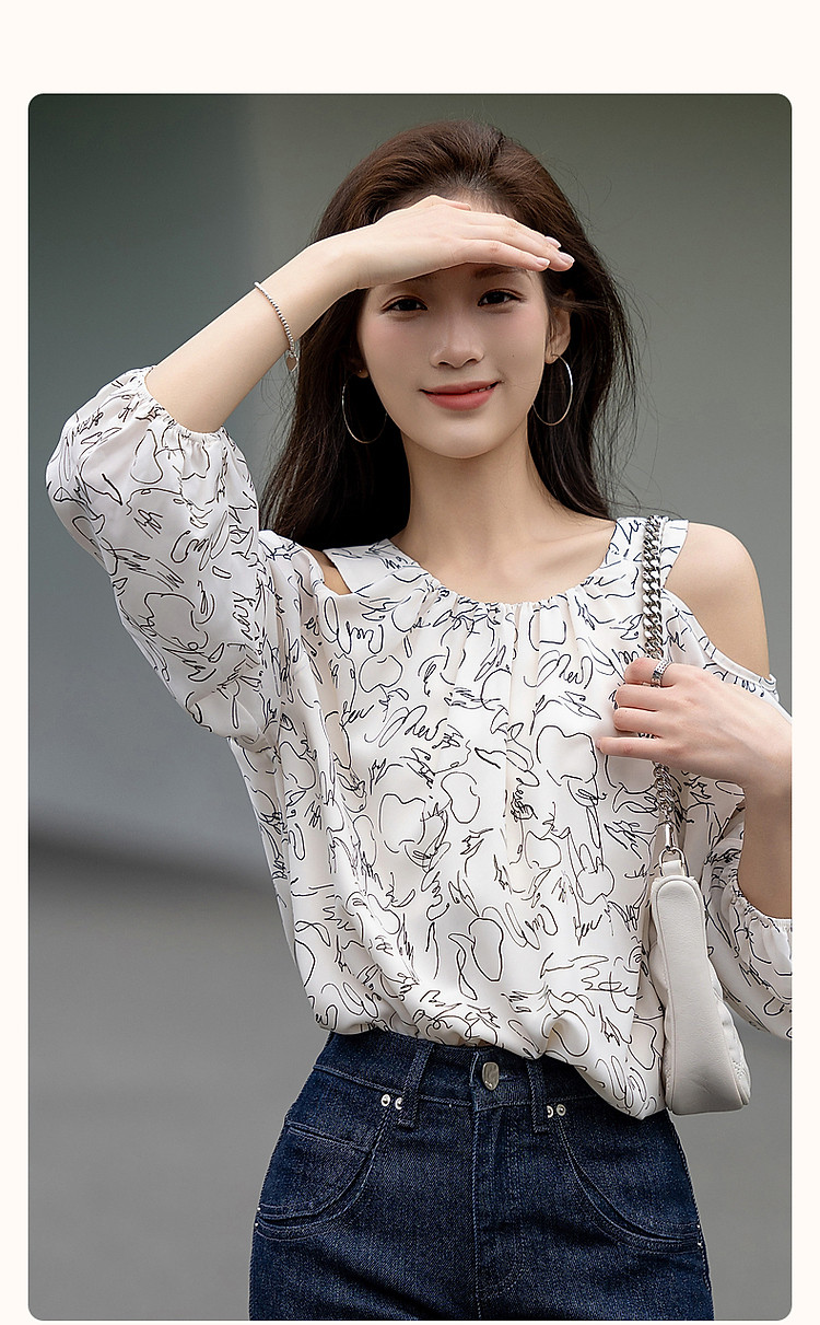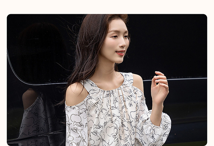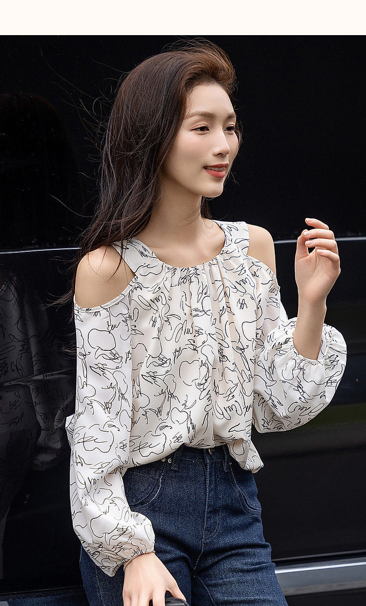 商品名称:【清浅繁花】春秋韩系大美女设计感露肩衬衫细腻舒爽藏肉衬衣 829697