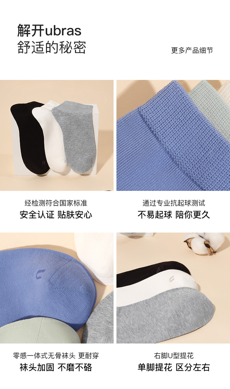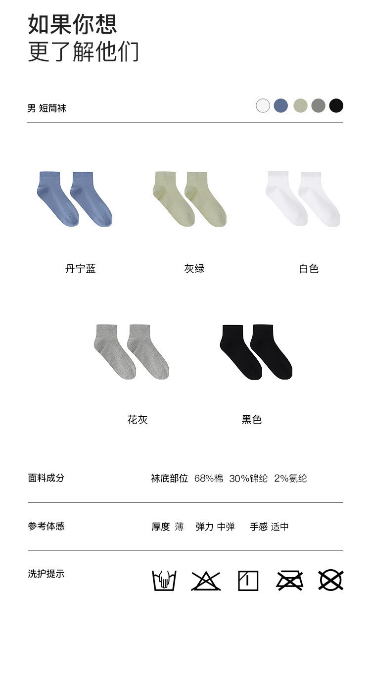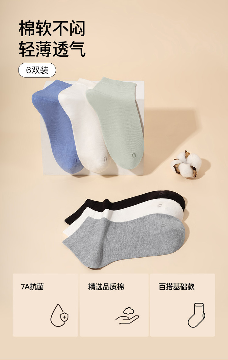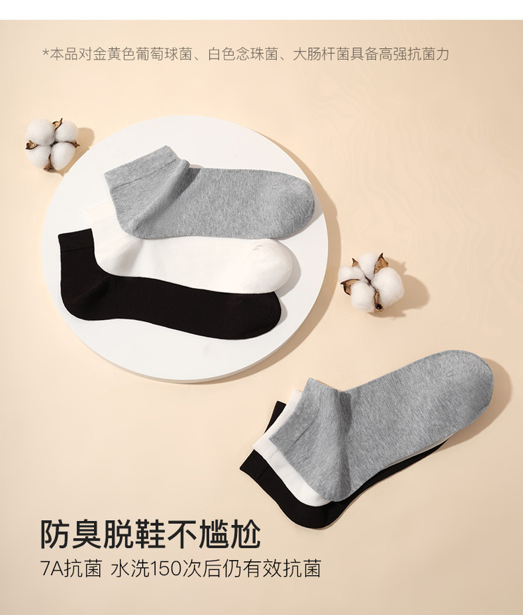 商品名称:【7A抗菌】6双装防臭透气短袜耐磨不起球薄款袜子男款夏季 754432