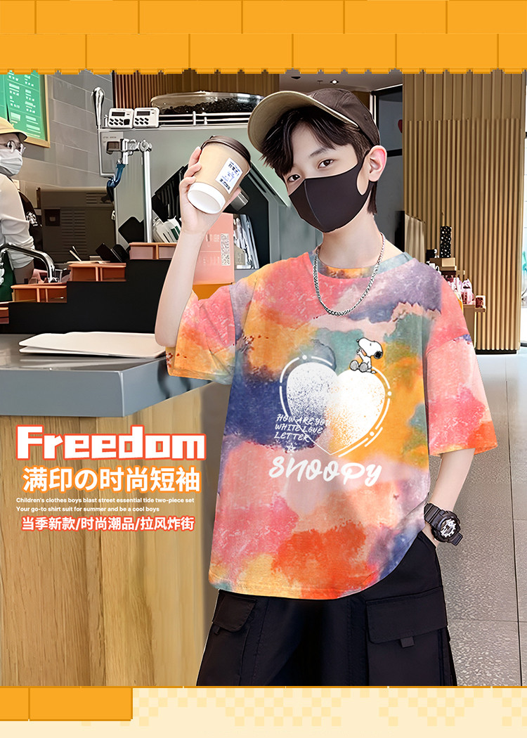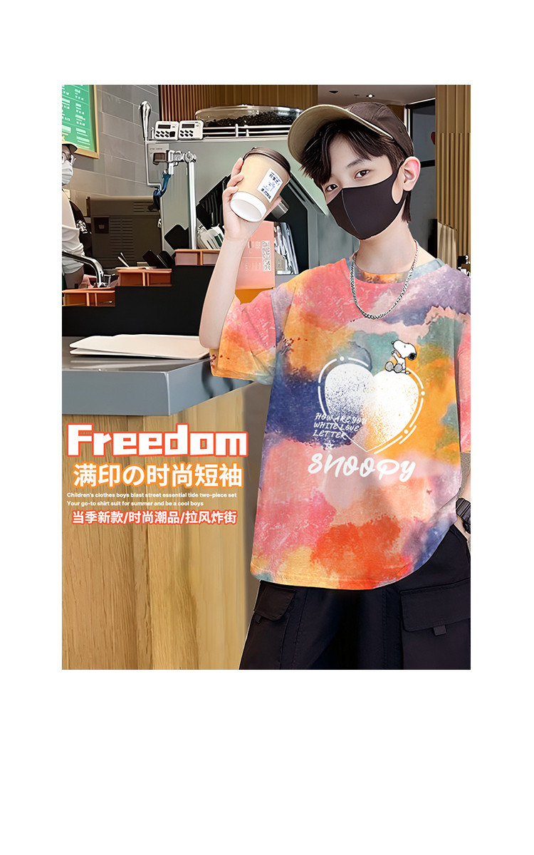 商品名称:男童夏装上衣2025新款夏季短袖帅气中大童扎染印花舒适百搭潮 429727