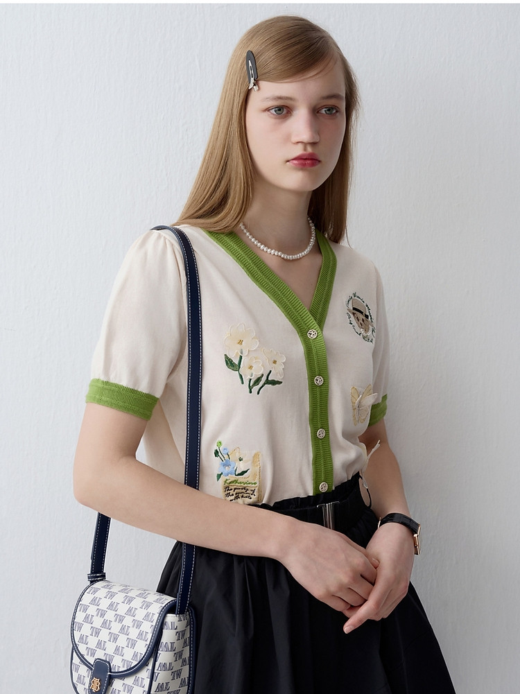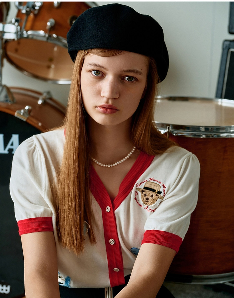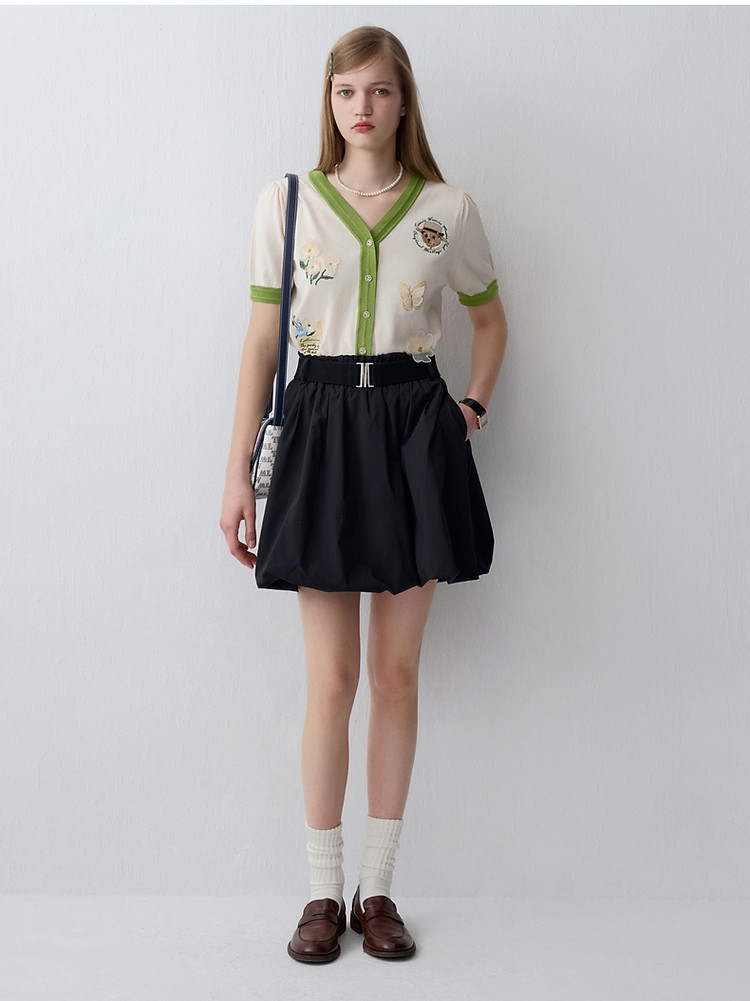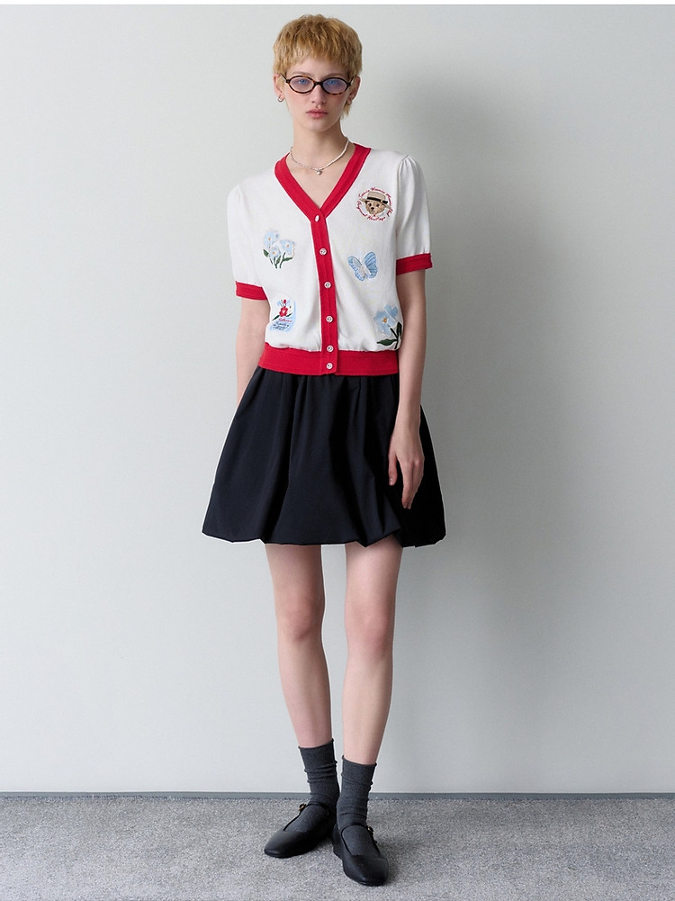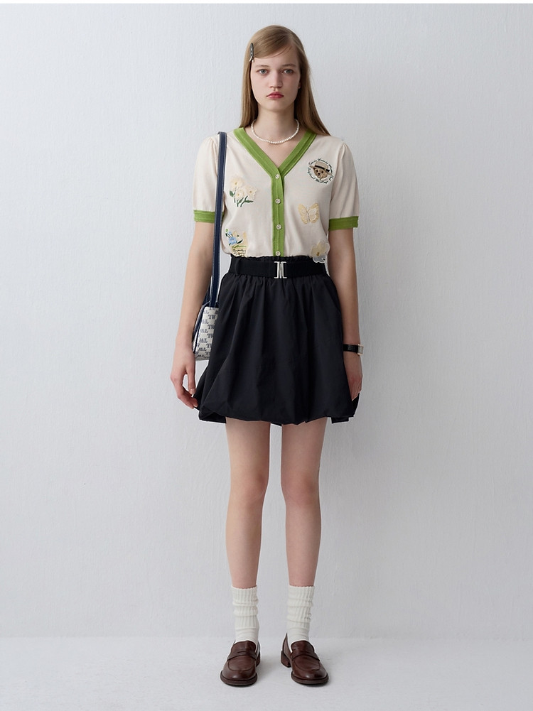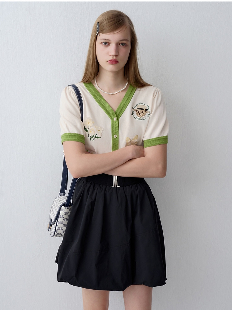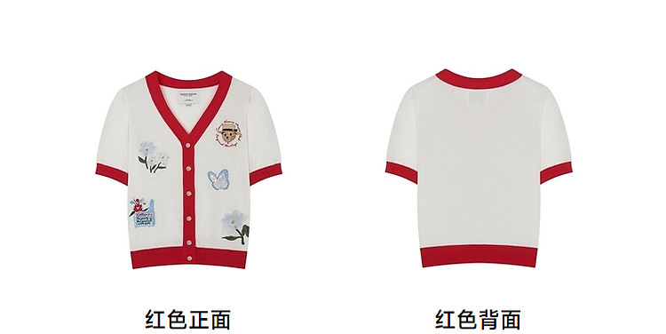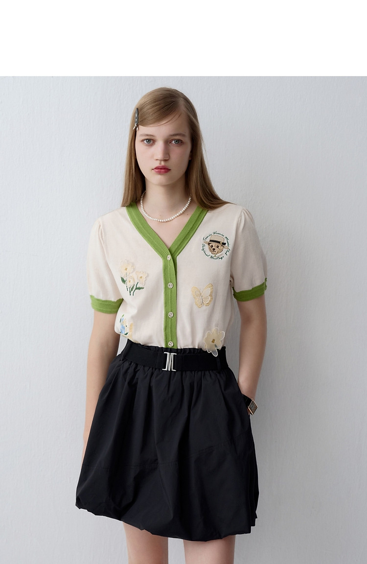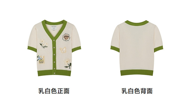 商品名称:小熊夏季款V领短袖针织开衫薄款时尚设计感女士 954113