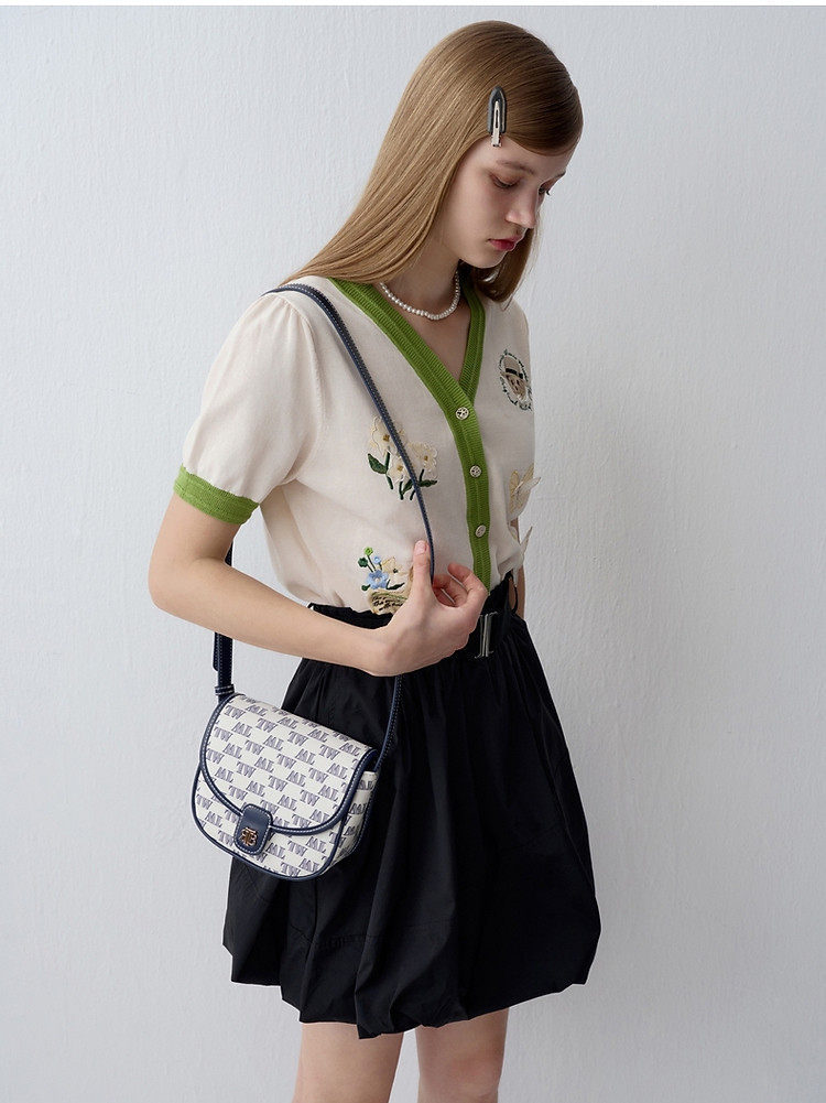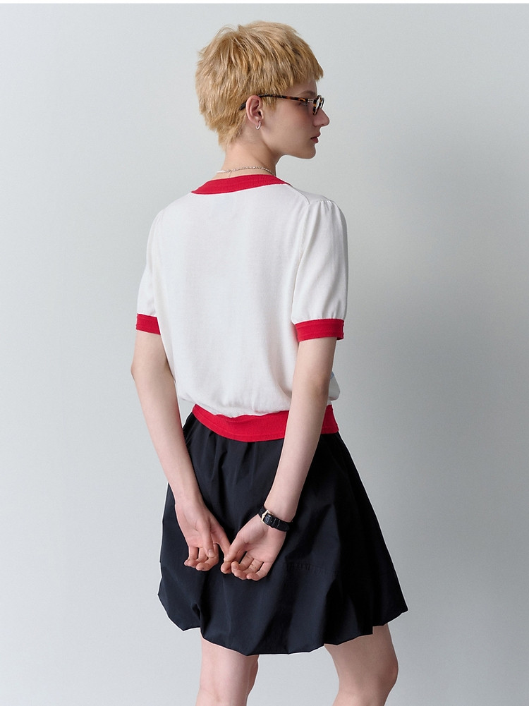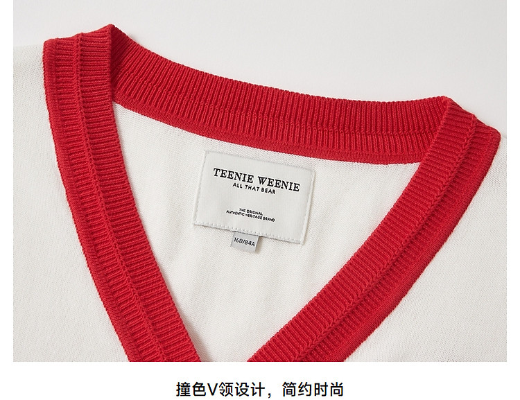 小熊夏季款V领短袖针织开衫薄款时尚设计感女士 954113