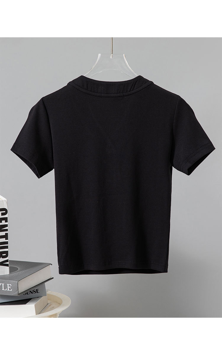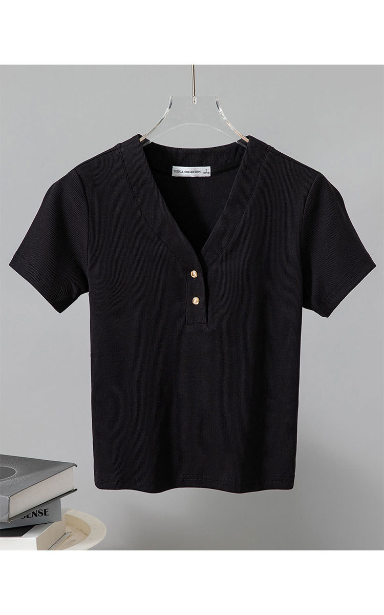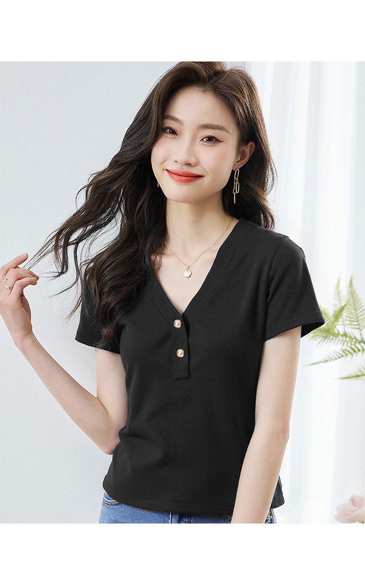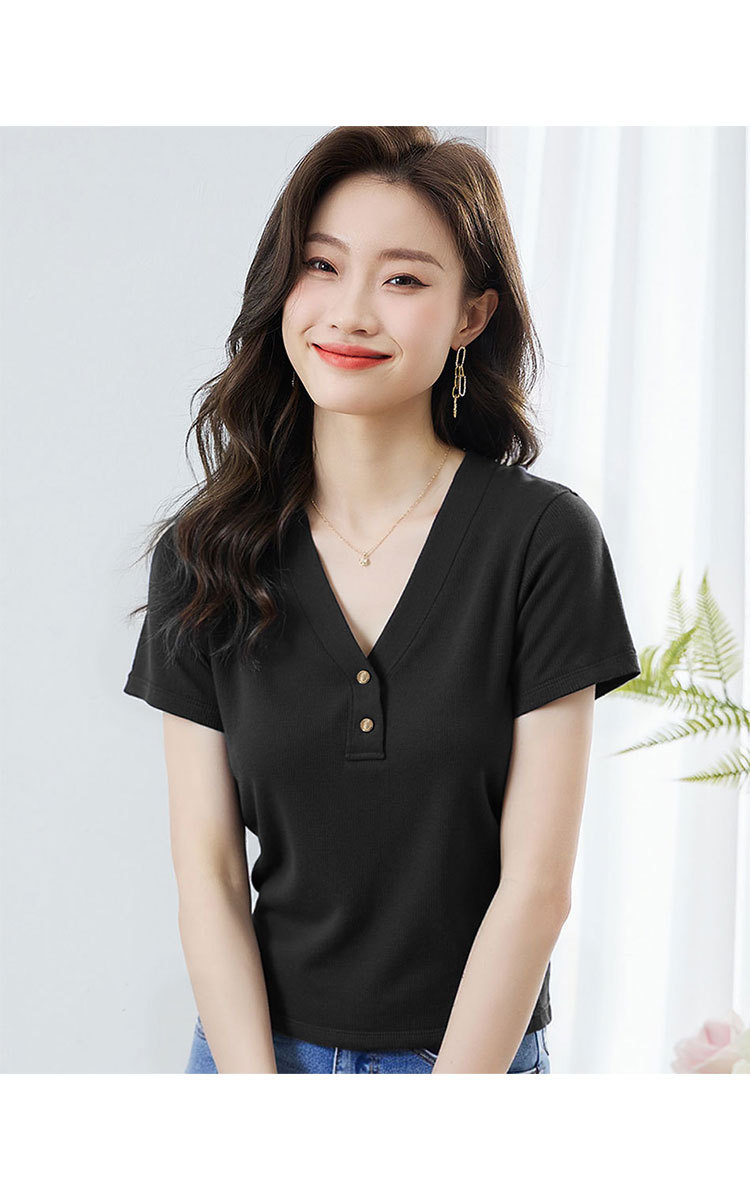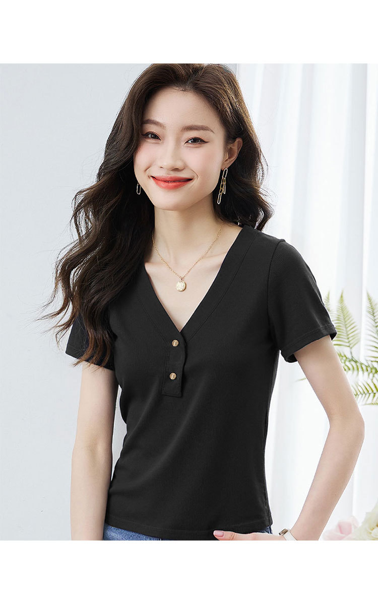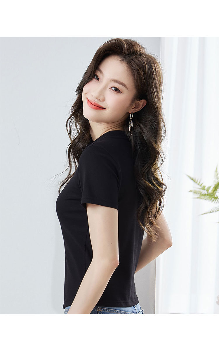 商品名称:纯色V领短袖女t恤高级感夏季正肩短款显瘦女t恤短袖上衣 456991