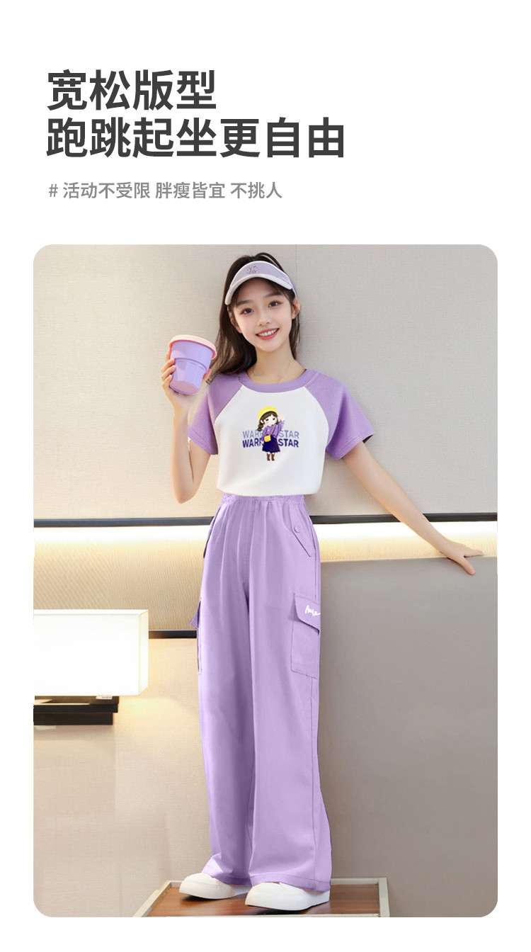 商品名称:童装女童套装甜美24夏装中大童韩版短款T恤套装薄款时尚洋气潮 888339