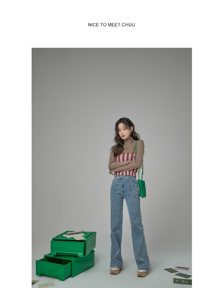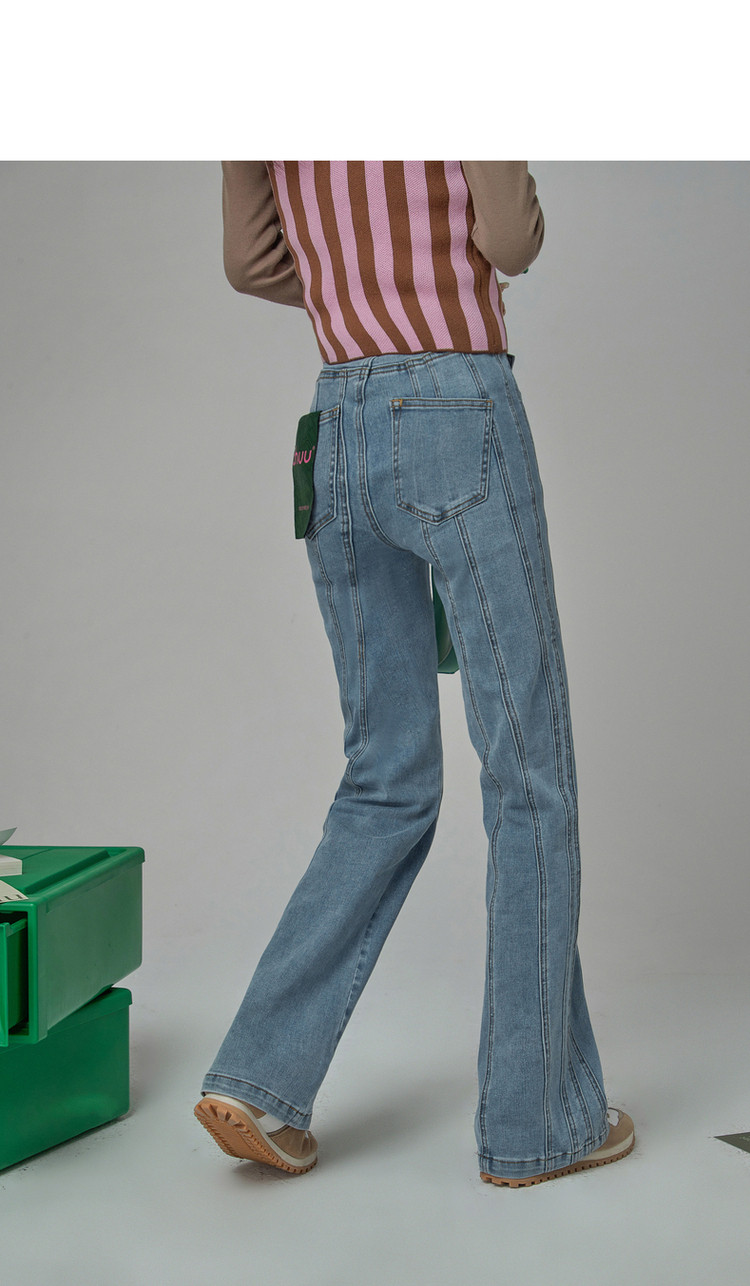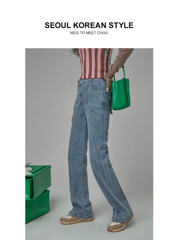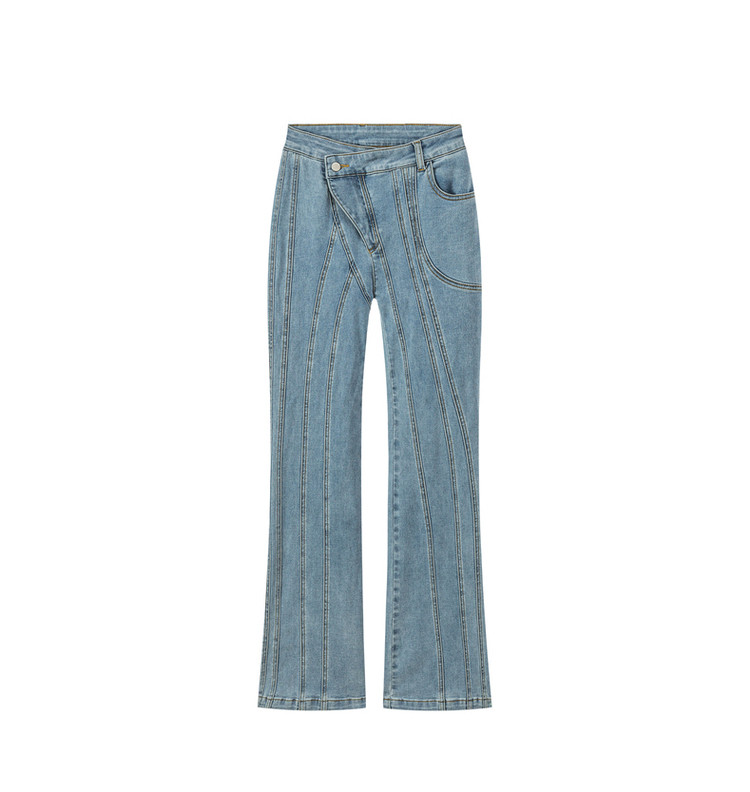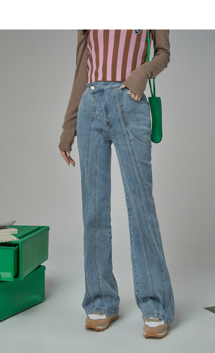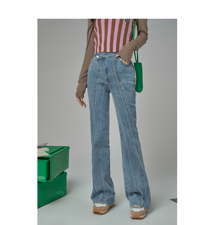 商品名称:条纹阔腿牛仔裤女春秋设计感高腰直筒裤 364883
