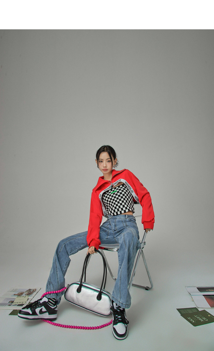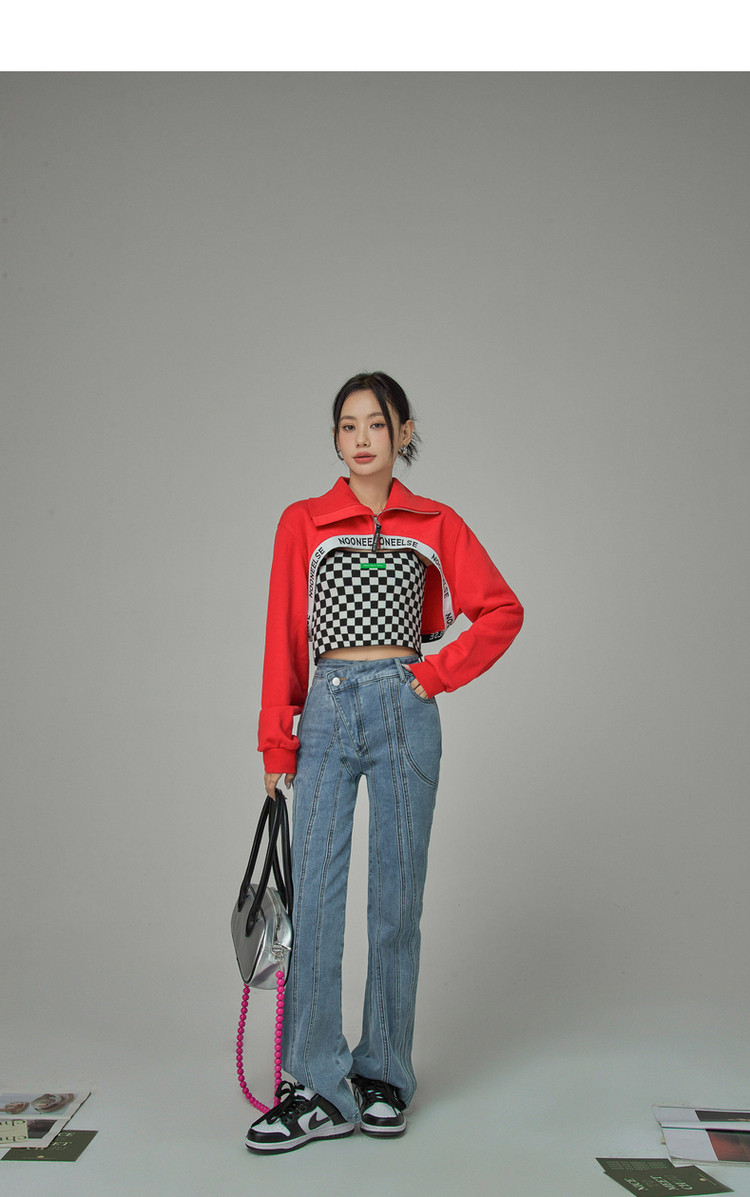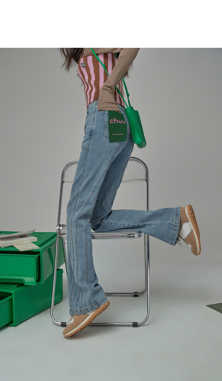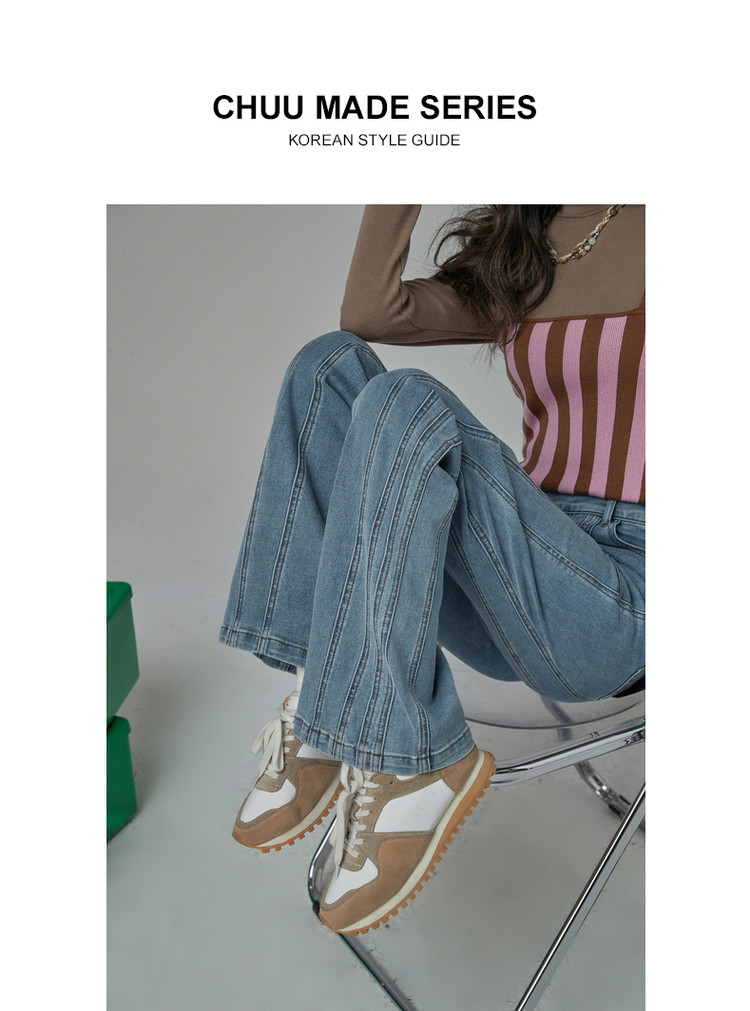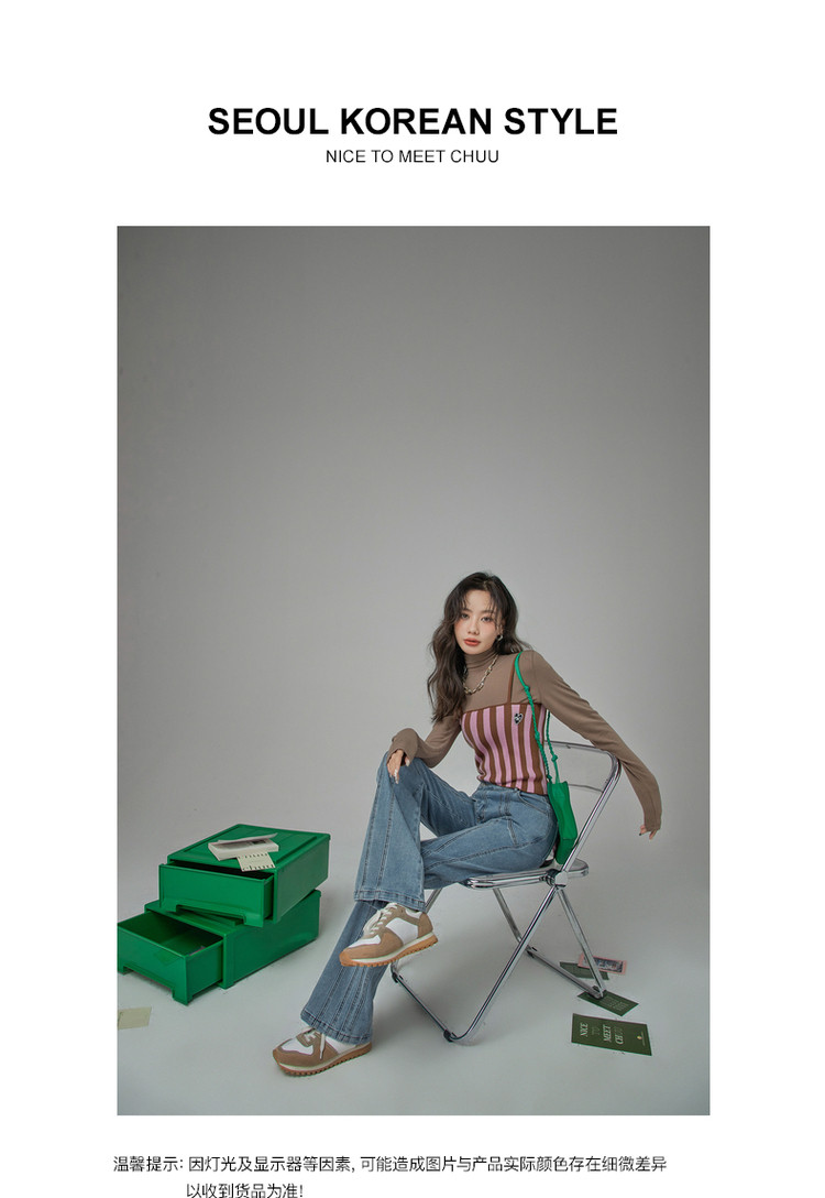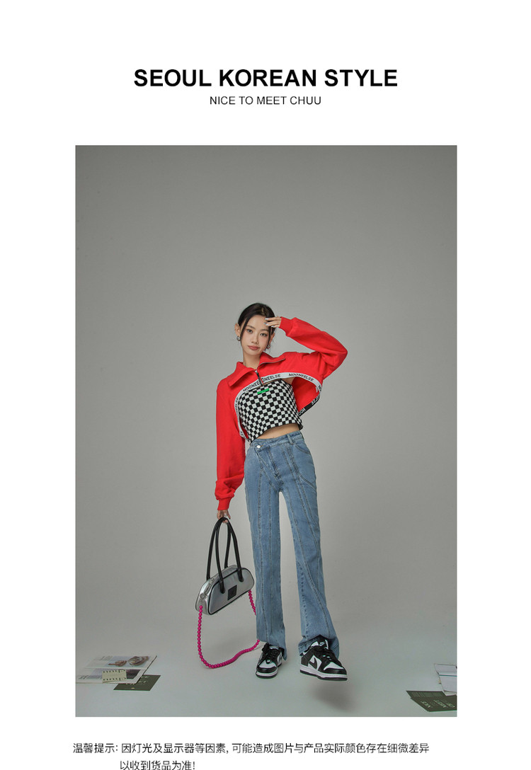 商品名称:条纹阔腿牛仔裤女春秋设计感高腰直筒裤 364883