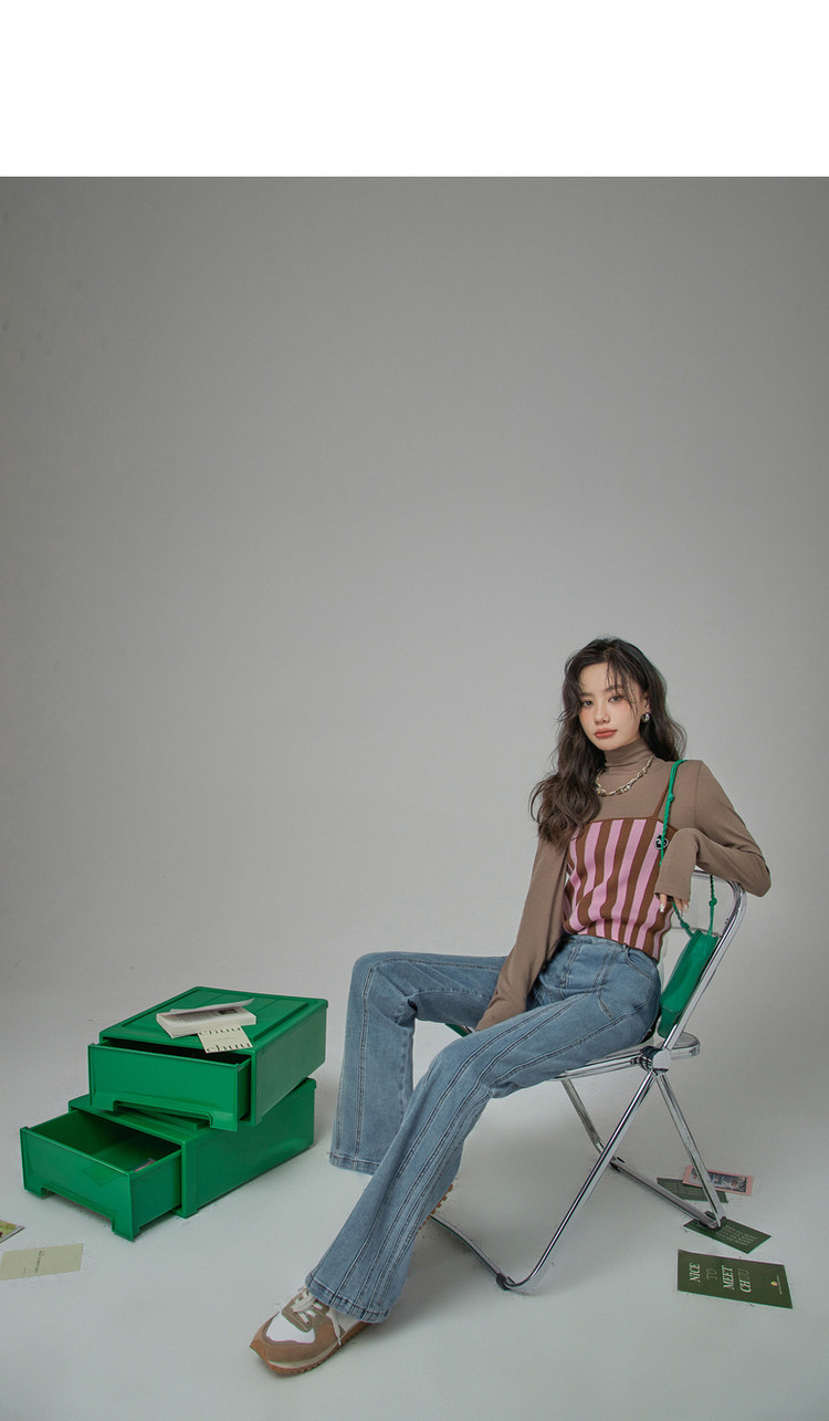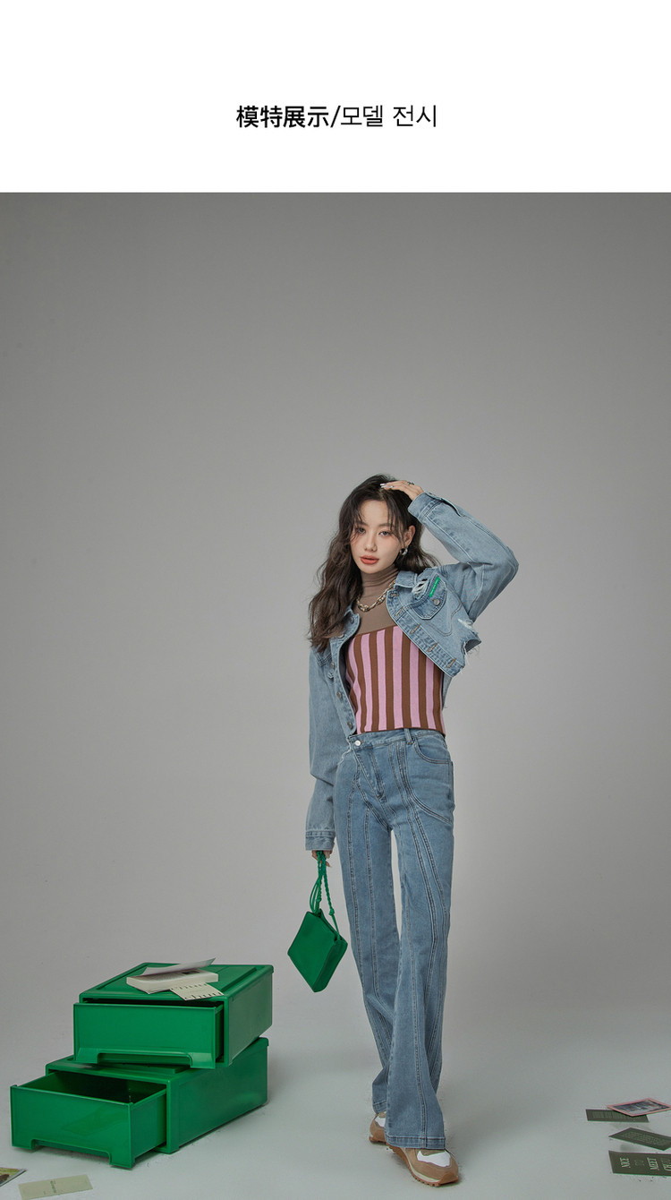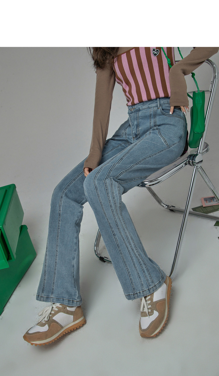 条纹阔腿牛仔裤女春秋设计感高腰直筒裤 364883