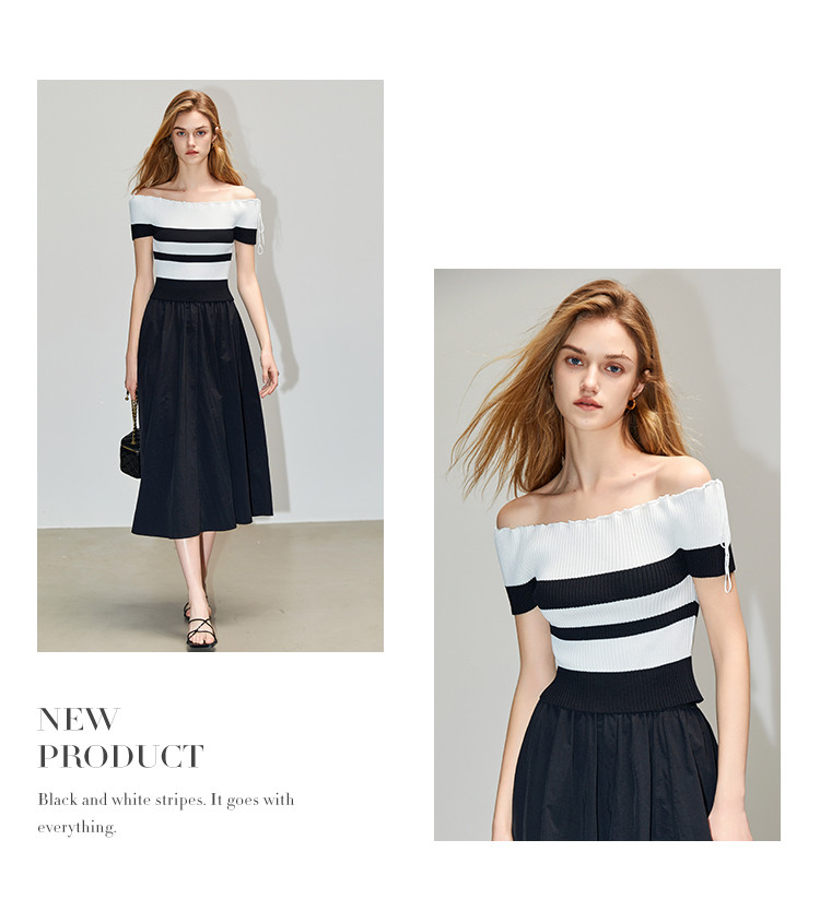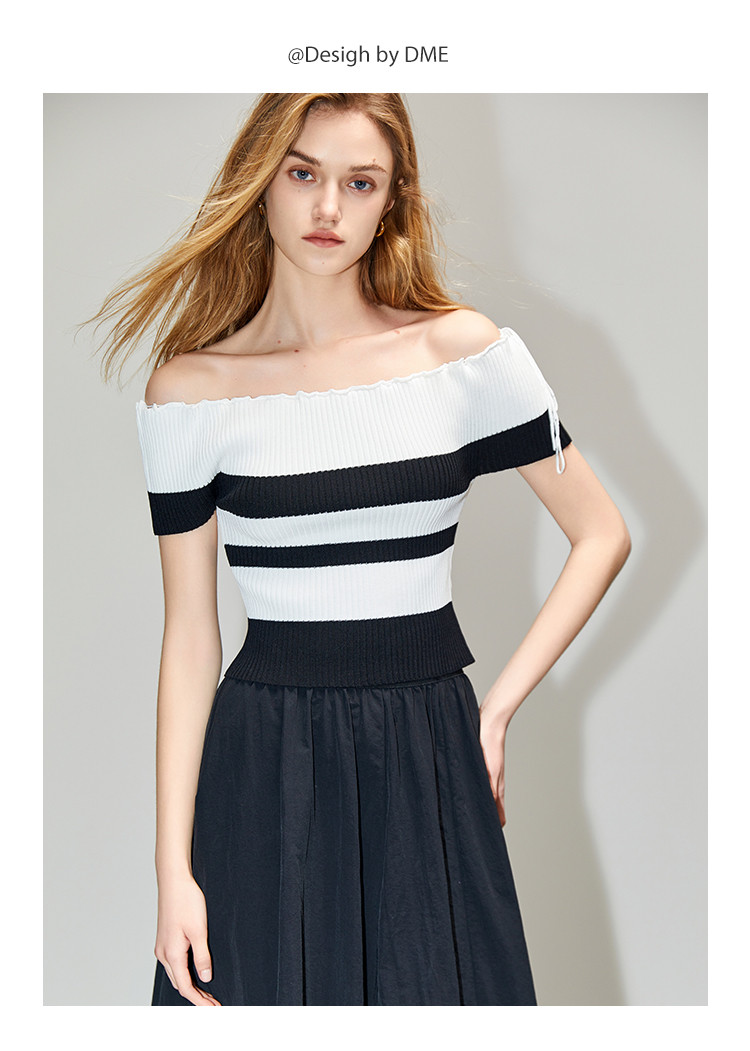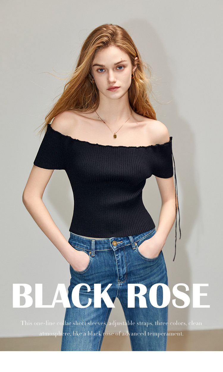 商品名称:【甜酷一字肩针织衫女】秋显瘦时尚减龄气质纯欲高级感上衣女 426049