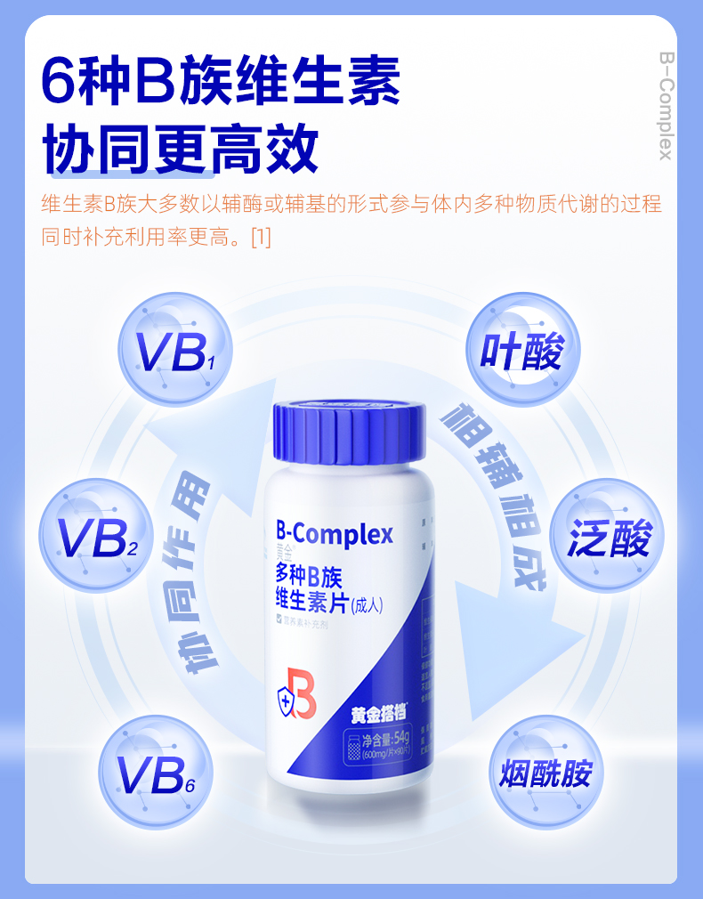 黄金搭档b族维生素咀嚼片VB1VB6叶酸护心肌促进铁锌吸收