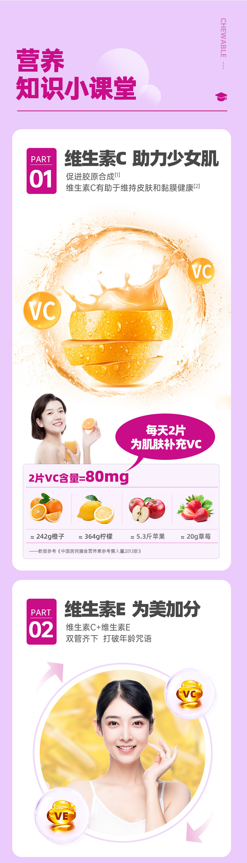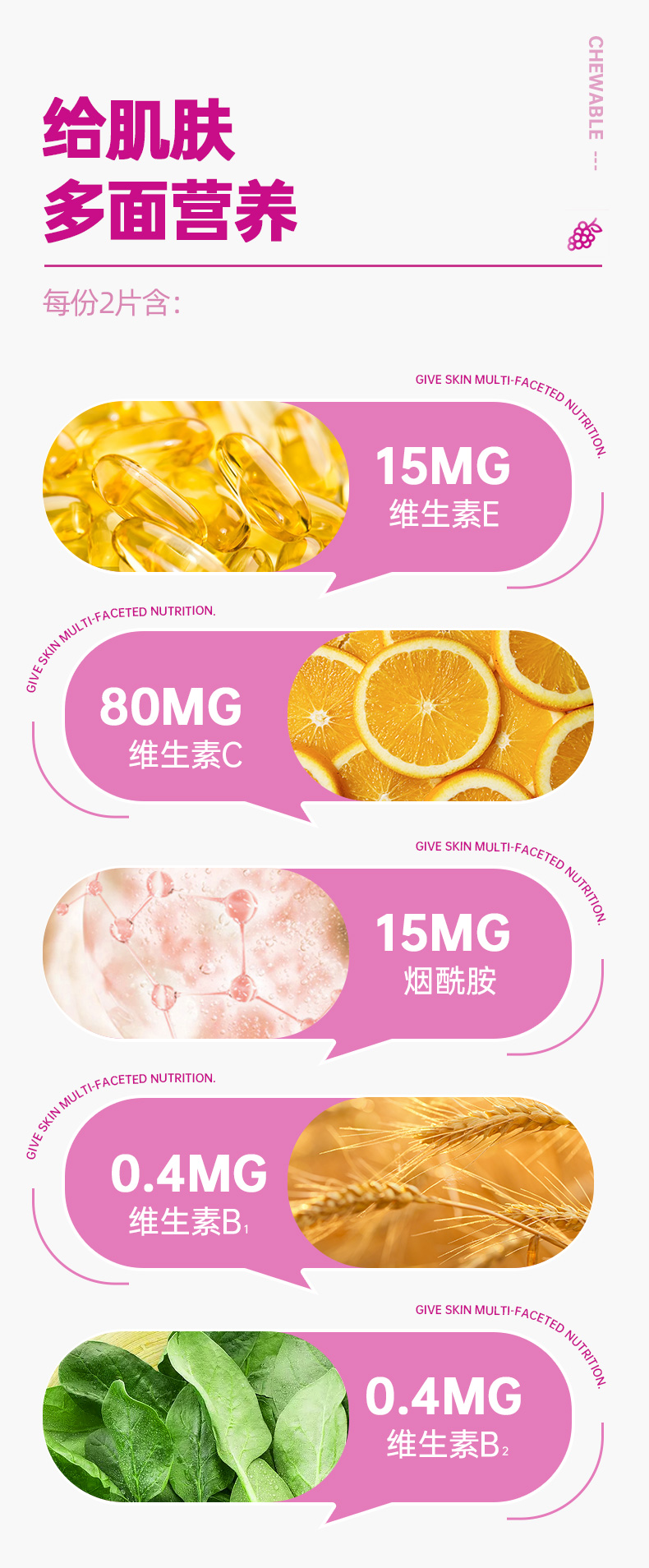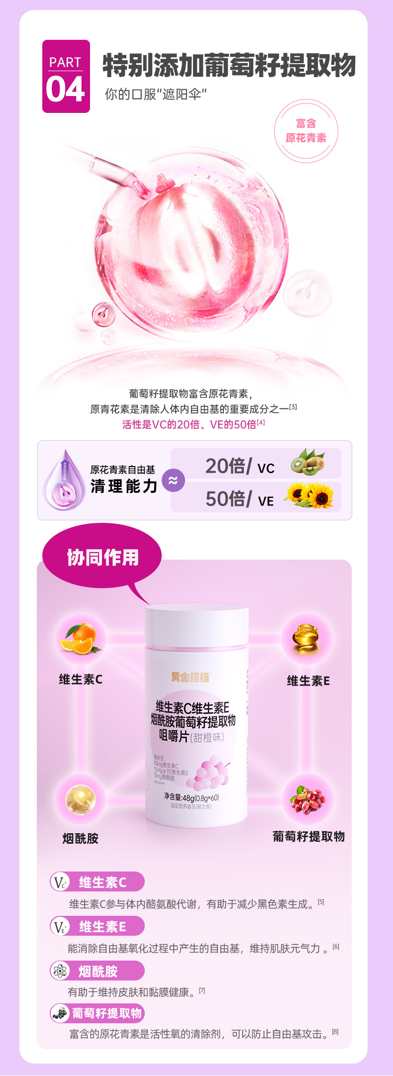 黄金搭档维生素C+E+烟酰胺+葡萄籽咀嚼片嫩肤改善身体疲劳