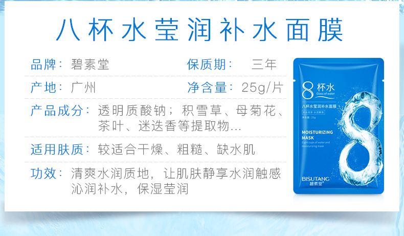 商品名称:碧素堂八杯水莹润补水面膜
