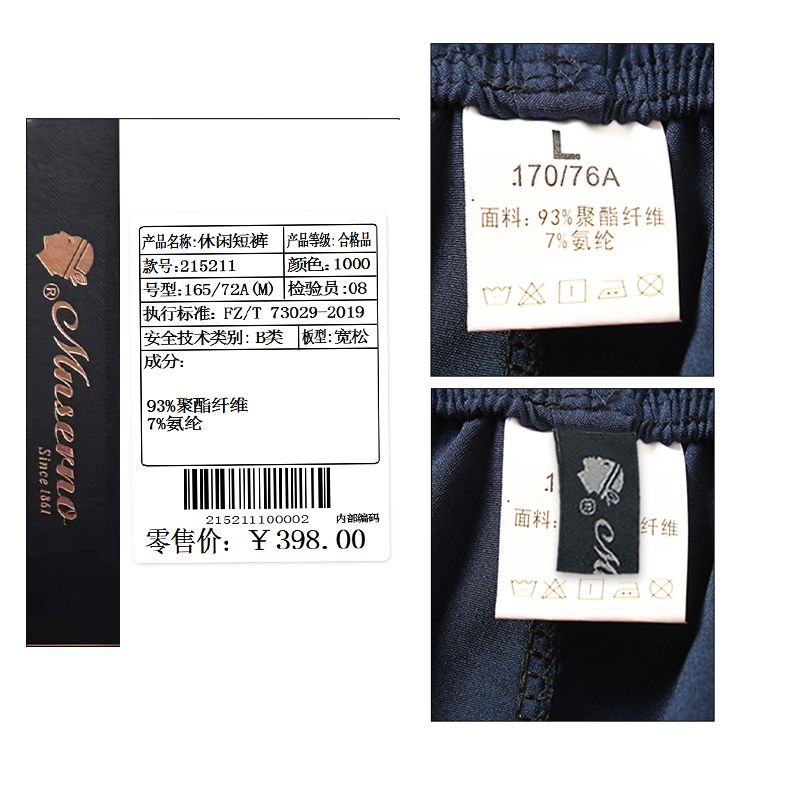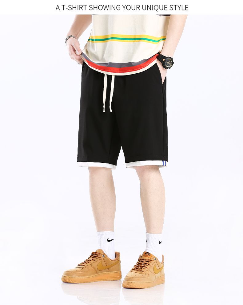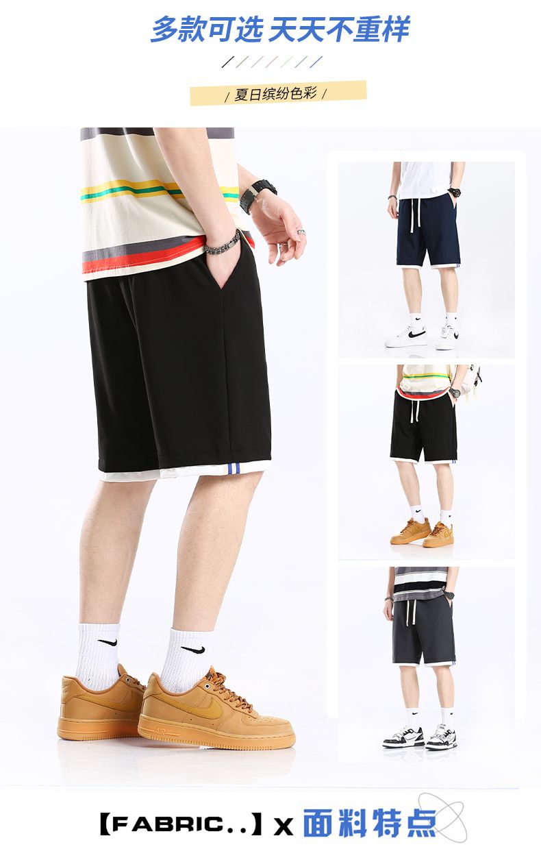 商品名称:曼西尔奴男士时尚潮流运动撞色拼接弹力舒适五分休闲短裤215211TM