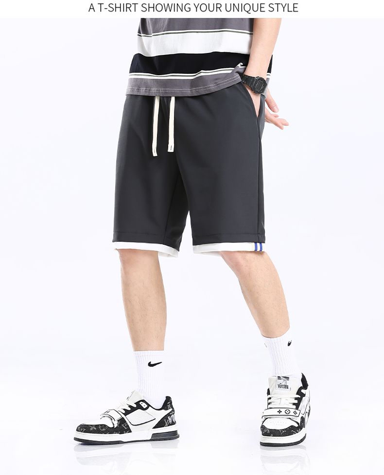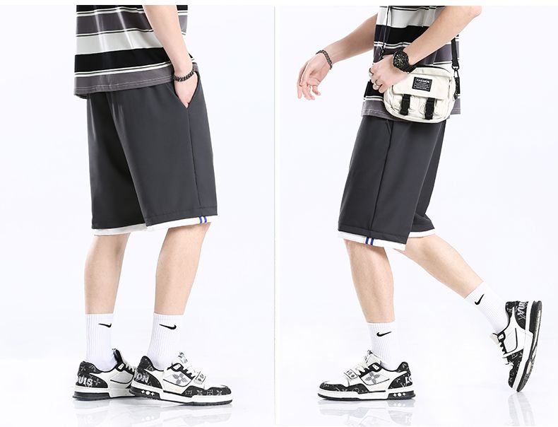 曼西尔奴男士时尚潮流运动撞色拼接弹力舒适五分休闲短裤215211TM