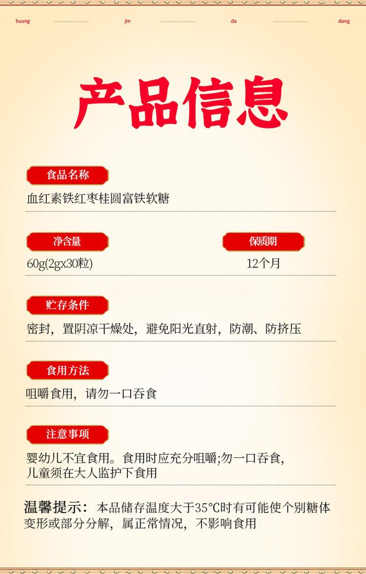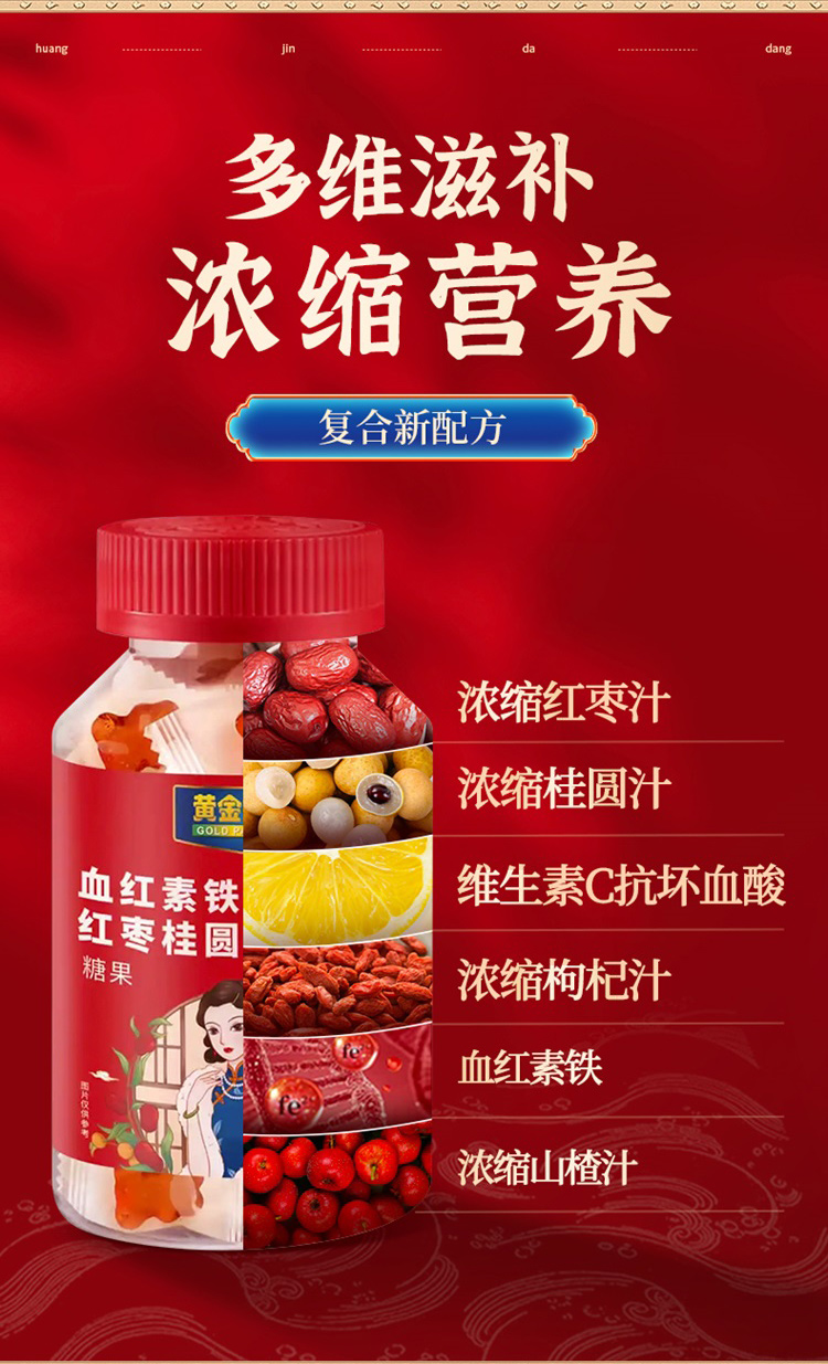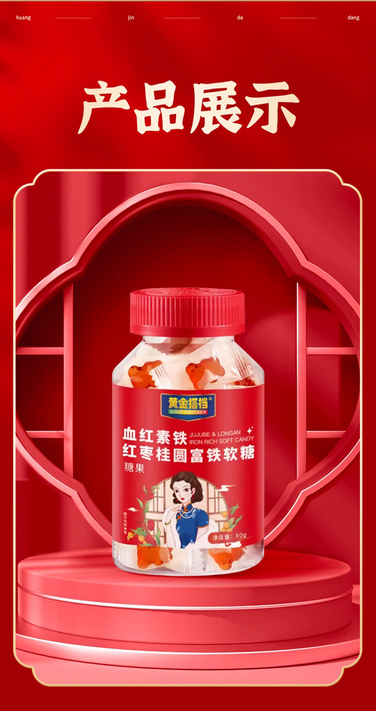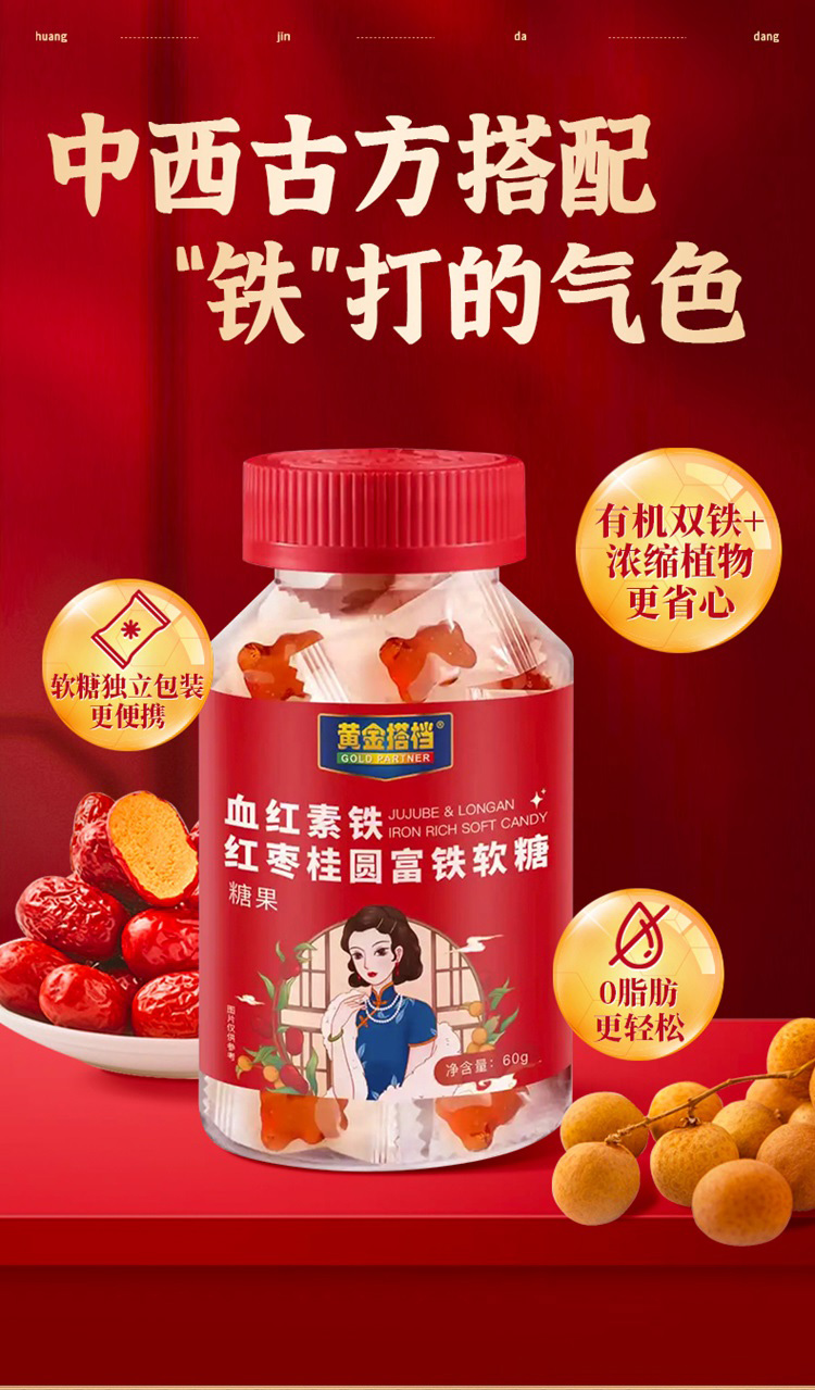 商品名称:【明星沈涛 赵雅芝推荐】黄金搭档血红素铁红枣桂圆富铁软糖补血补铁
