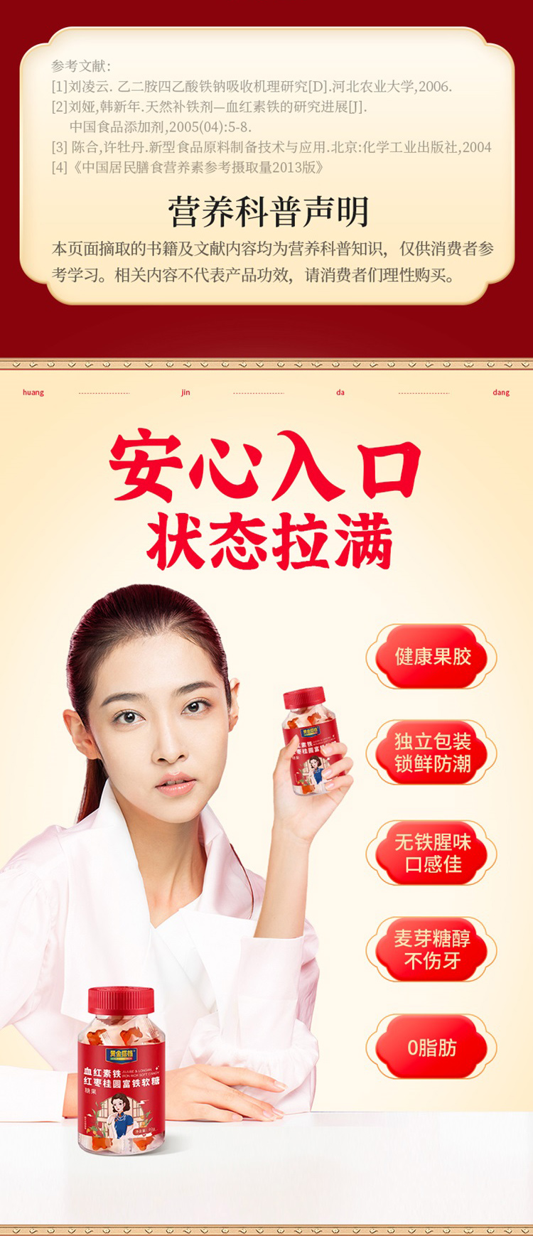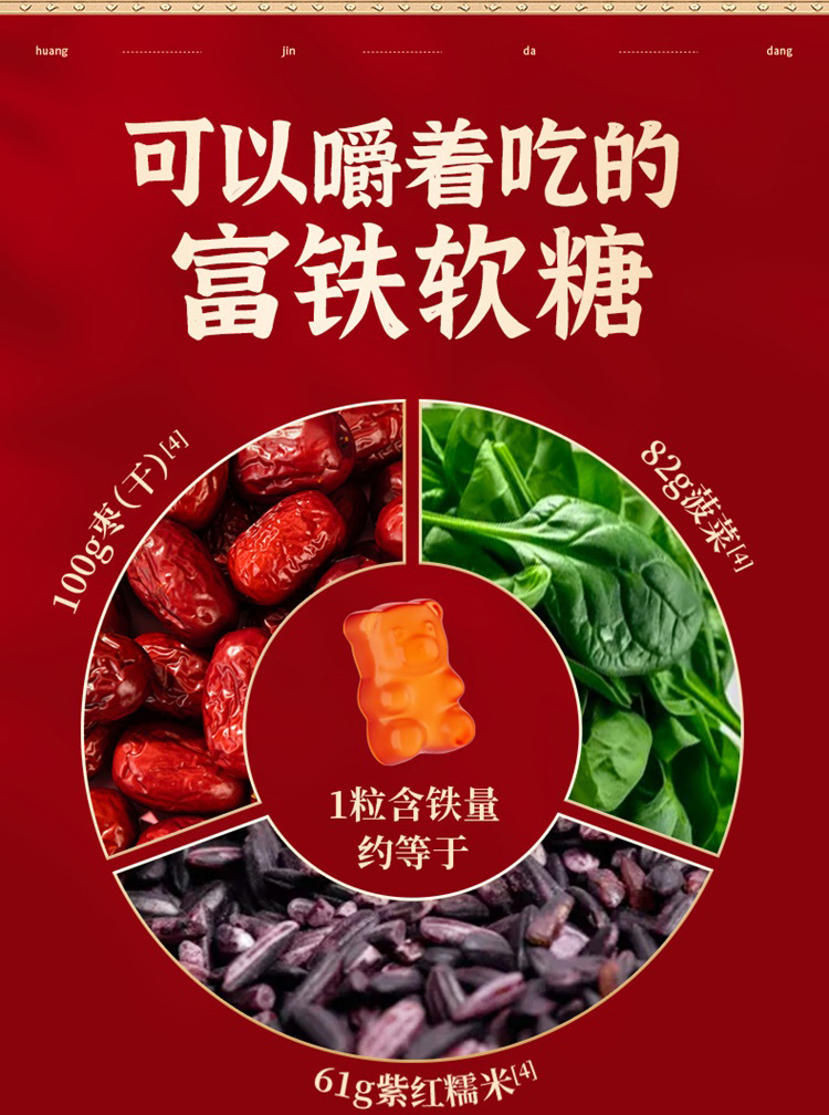 【明星沈涛 赵雅芝推荐】黄金搭档血红素铁红枣桂圆富铁软糖补血补铁