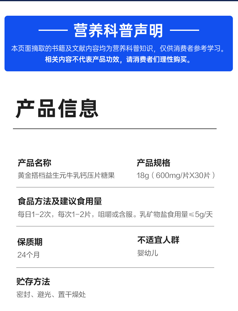 商品名称:黄金搭档益生元牛乳钙片呵护肠道高效补钙