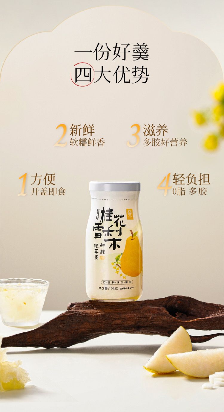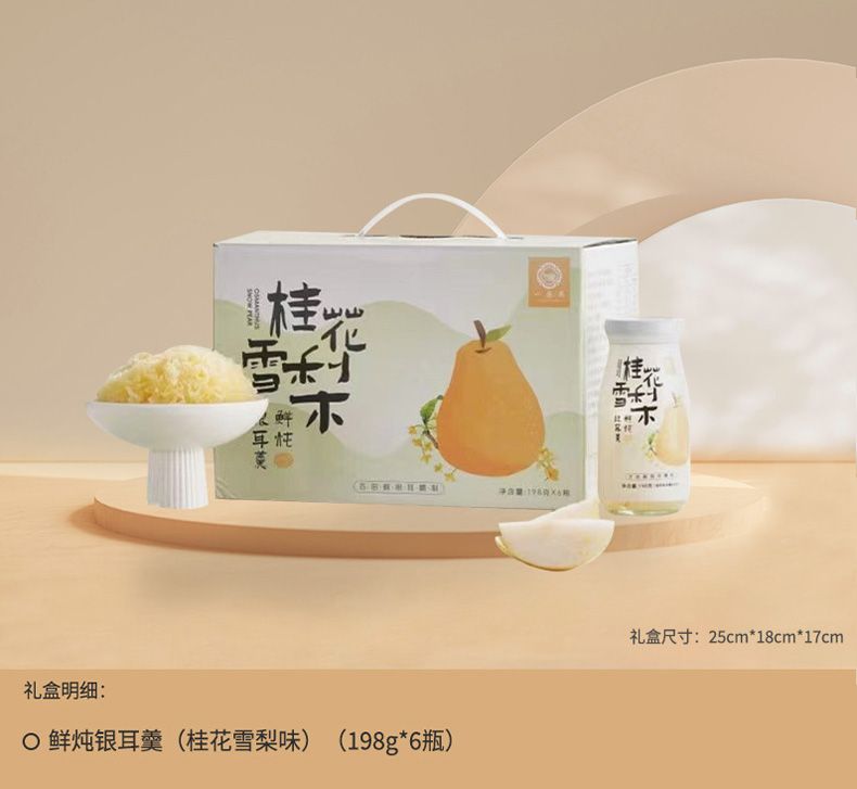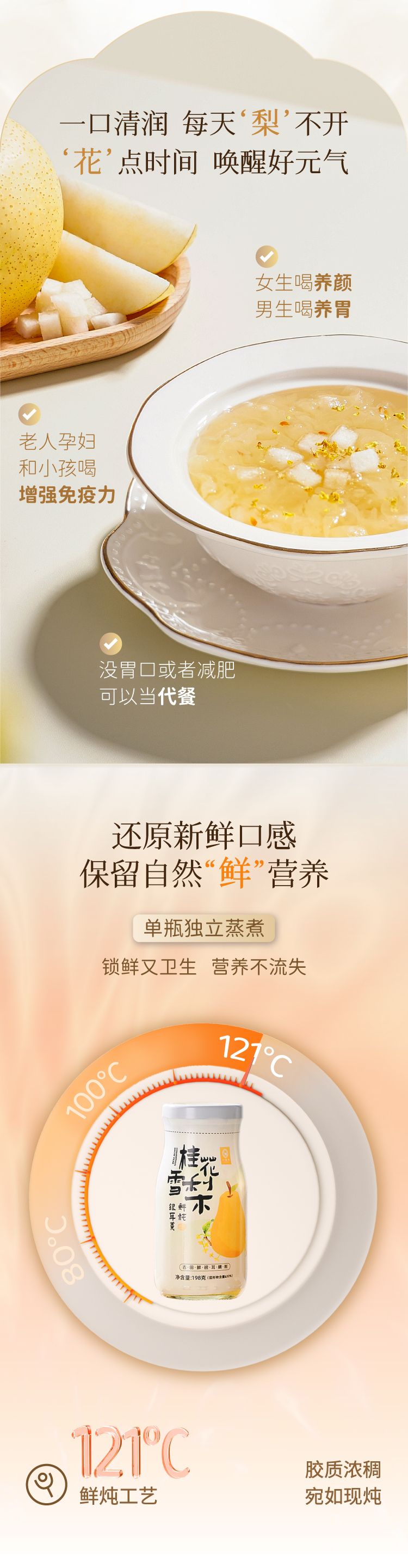 鲜炖桂花雪梨银耳羹桂花雪梨味正宗198g*6瓶装小孩孕妇营养即食送礼整箱