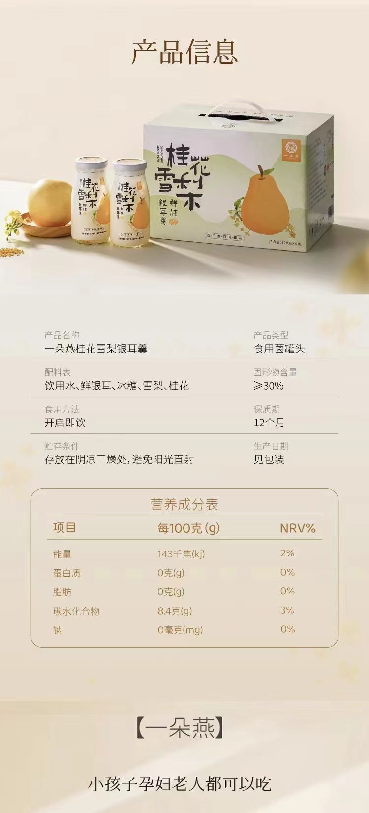 商品名称:鲜炖桂花雪梨银耳羹桂花雪梨味正宗198g*6瓶装小孩孕妇营养即食送礼整箱